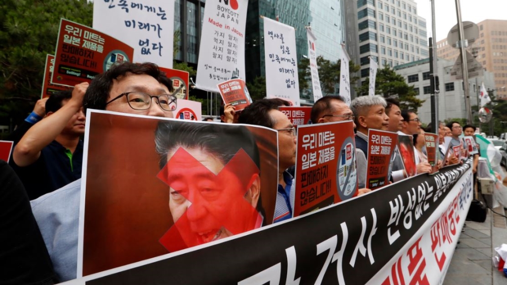 “We will continue boycotting the consumption and distribution of Japanese products until Japan’s government and the Abe administration apologises and withdraws its economic retaliation,” Kim said, referring to Japanese Prime Minister Shinzo Abe.