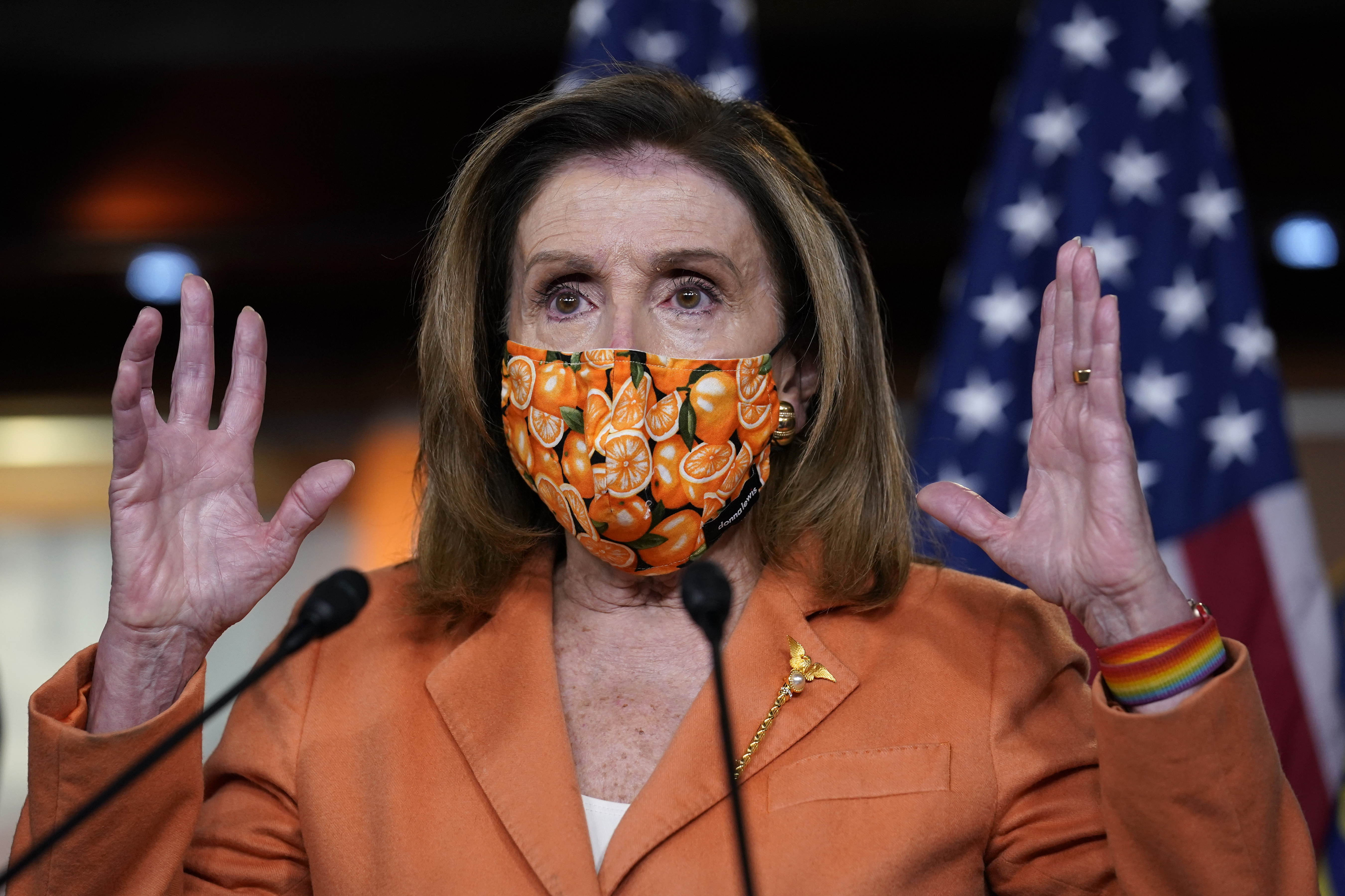 Trump signals talks over targeted aid are going well, but Pelosi says there needs to be agreement on a broader package.