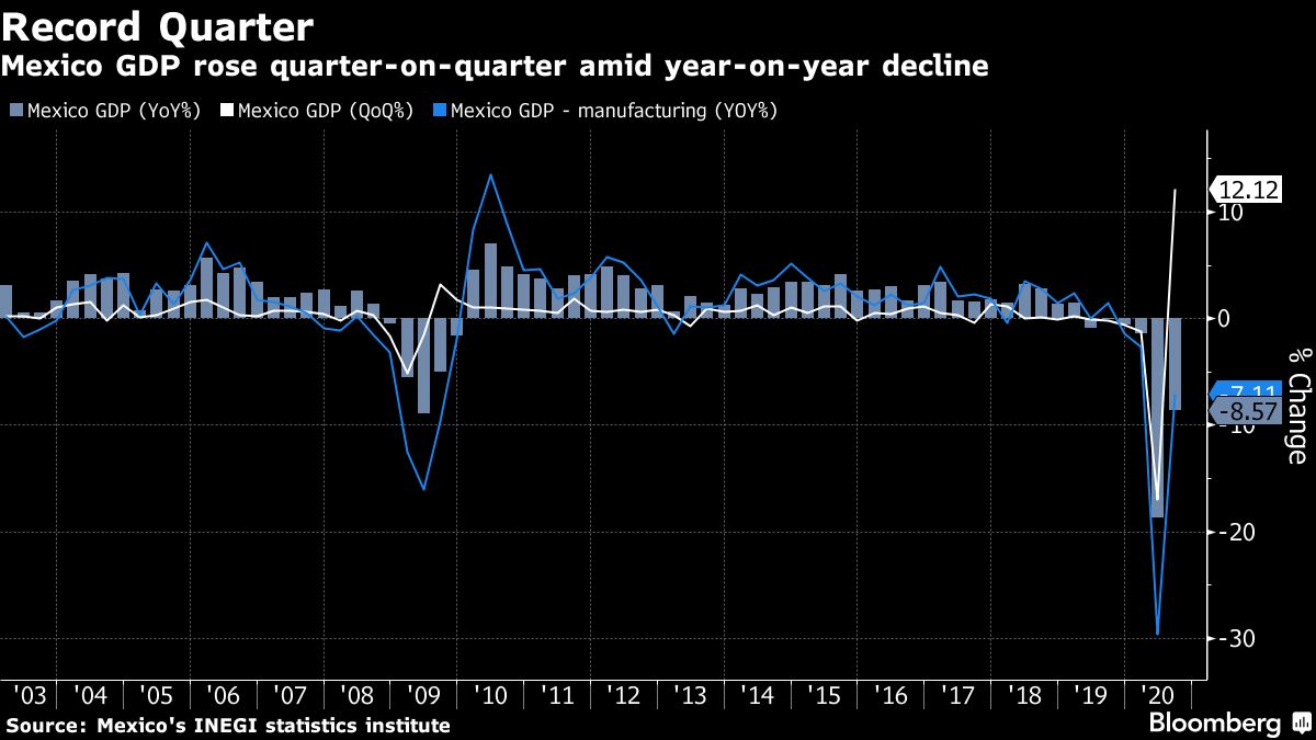 Gross domestic product rose 12.1% from the previous quarter, according to final data released by the national statistics institute Thursday. The expansion, the best in data going back to 1990, was slightly higher than the 12% growth both estimated by economists in a Bloomberg survey and also recorded in preliminary data published last month.