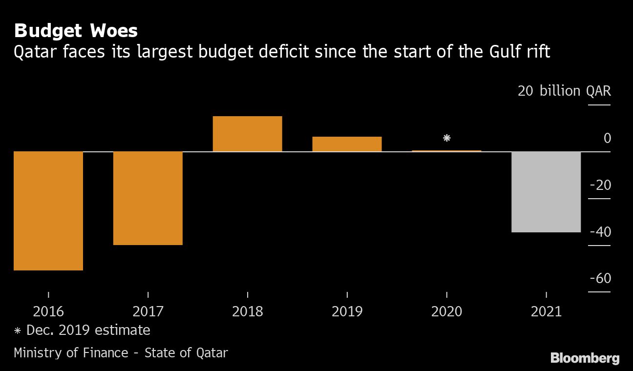 The country will spend 34.6 billion riyals ($9.4 billion) more than it takes in next year, according to a statement from the Finance Ministry on Thursday. The projected shortfall for next year will be the largest since 2017, when countries including Saudi Arabia and the United Arab Emirates severed diplomatic ties with Doha.