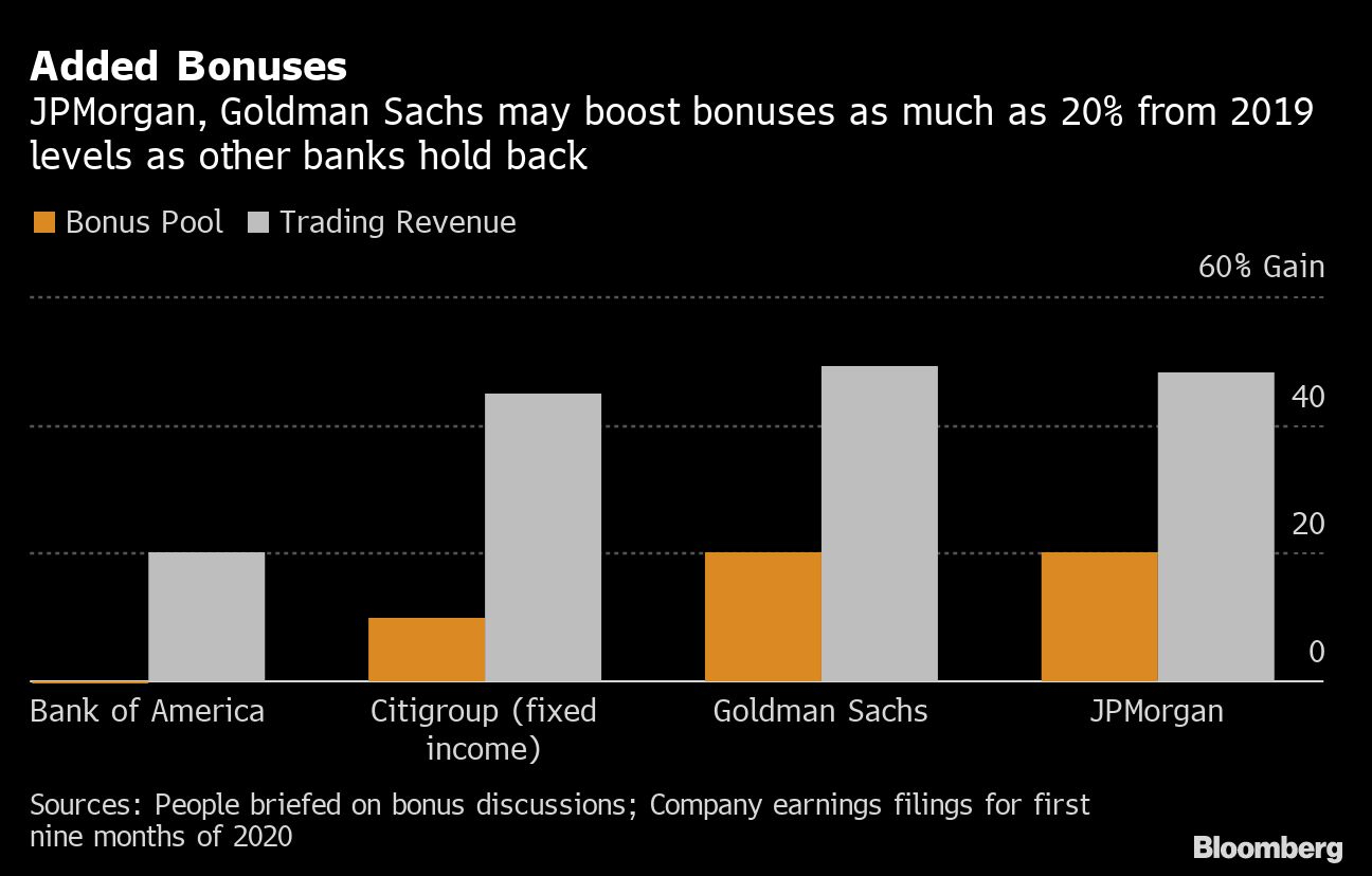 More-generous increases approaching 20% are under discussion at JPMorgan Chase & Co. and Goldman Sachs Group Inc., but even within those firms, bonuses will probably vary widely.