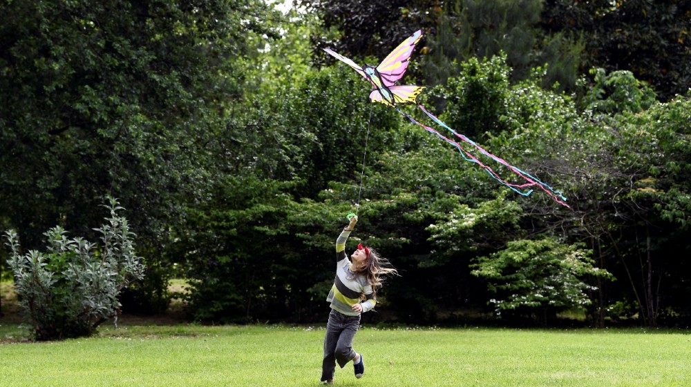 A child plays with a kite at a park in Milan as Italy begins a staged end to a nationwide lockdown [Flavio Lo Scalzo/Reuters]