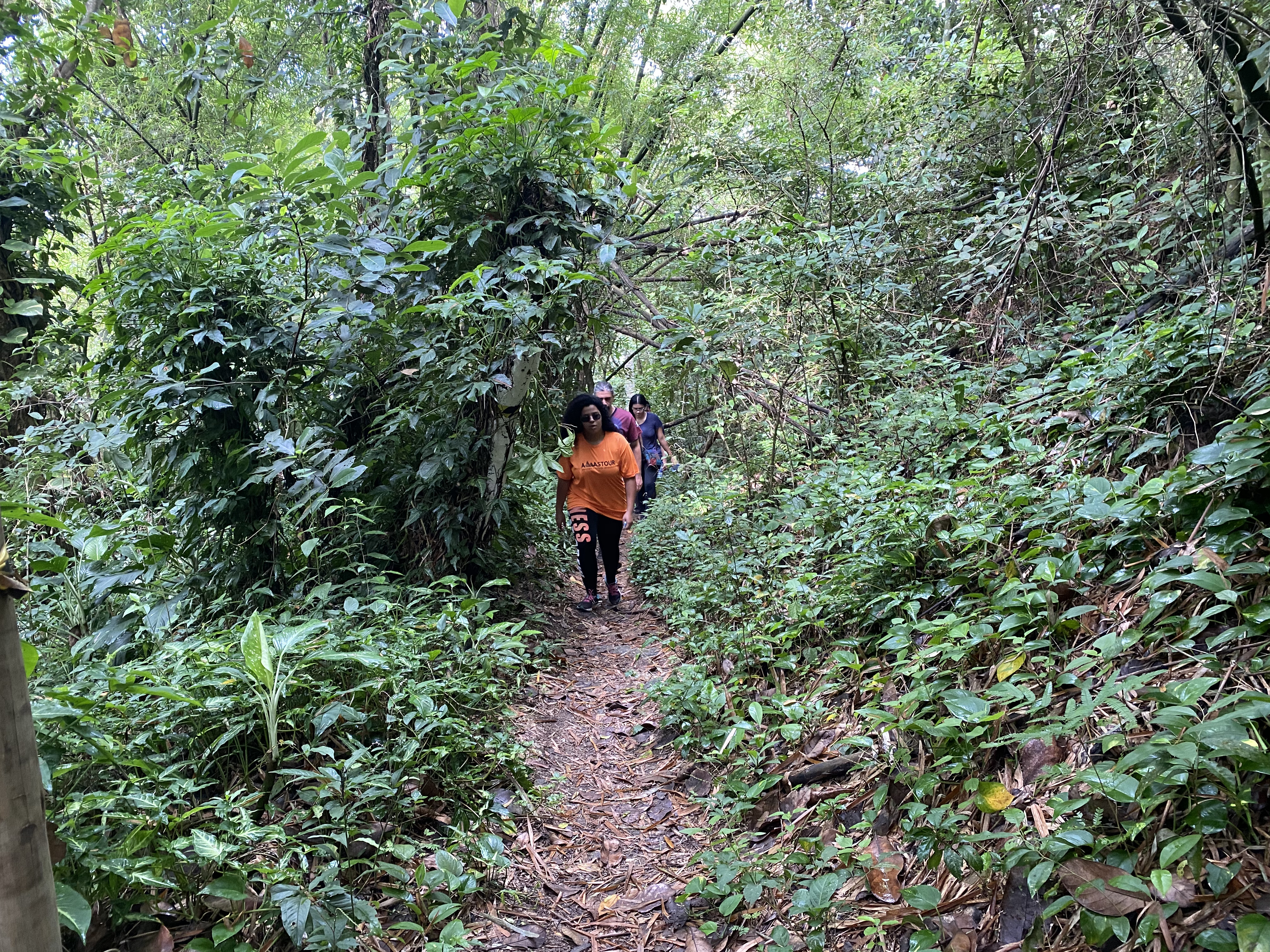 Hikers can take in a panorama of green hills, blue seas and white sandy beaches while listening to chirping birds or being watched by cautious tribes of small monkeys.