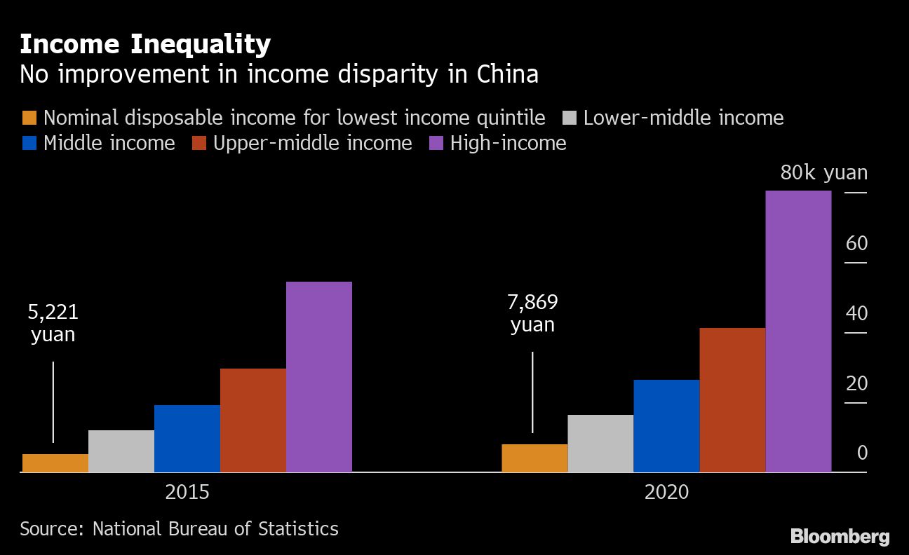 Official figures released on Monday which showed that the economy’s growth rate surpassed pre-pandemic levels in the last quarter also revealed that the richest 20% of Chinese had an average disposable income of more than 80,000 yuan ($12,000) last year, 10.2 times what the poorest 20% earn.