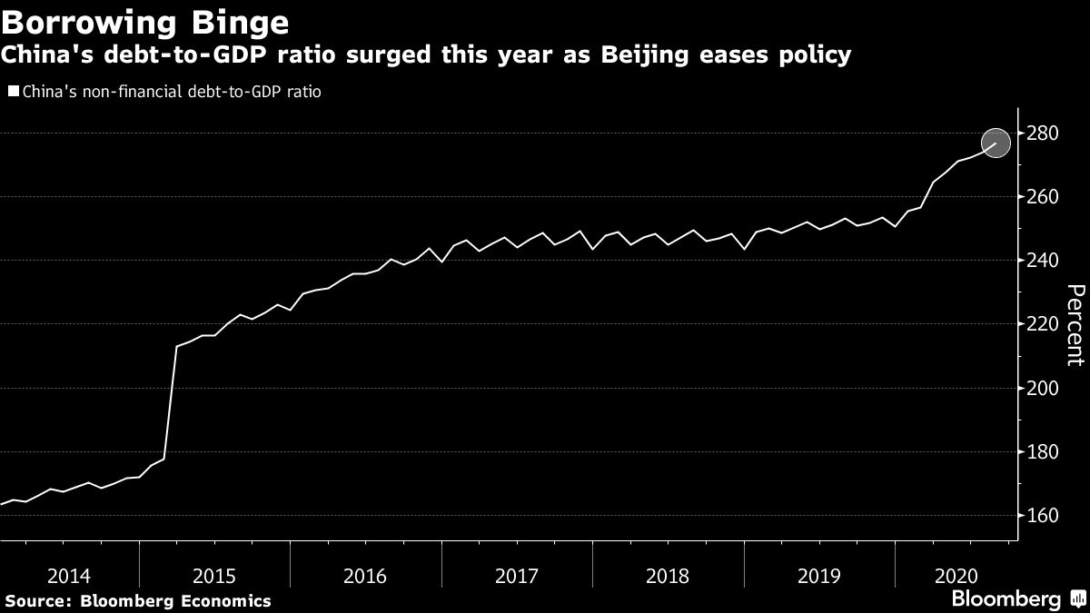 China’s debt levels have climbed during the coronavirus pandemic, especially in the private sector.