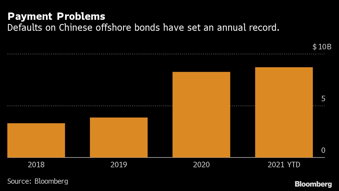 Chinese borrowers have defaulted on about $9 billion of offshore bonds this year, with the real estate industry accounting for one-third of that amount. That’s come as authorities clamp down on excessive leverage in the real estate sector amid a crisis at China Evergrande Group that has left many investors around the world on edge.