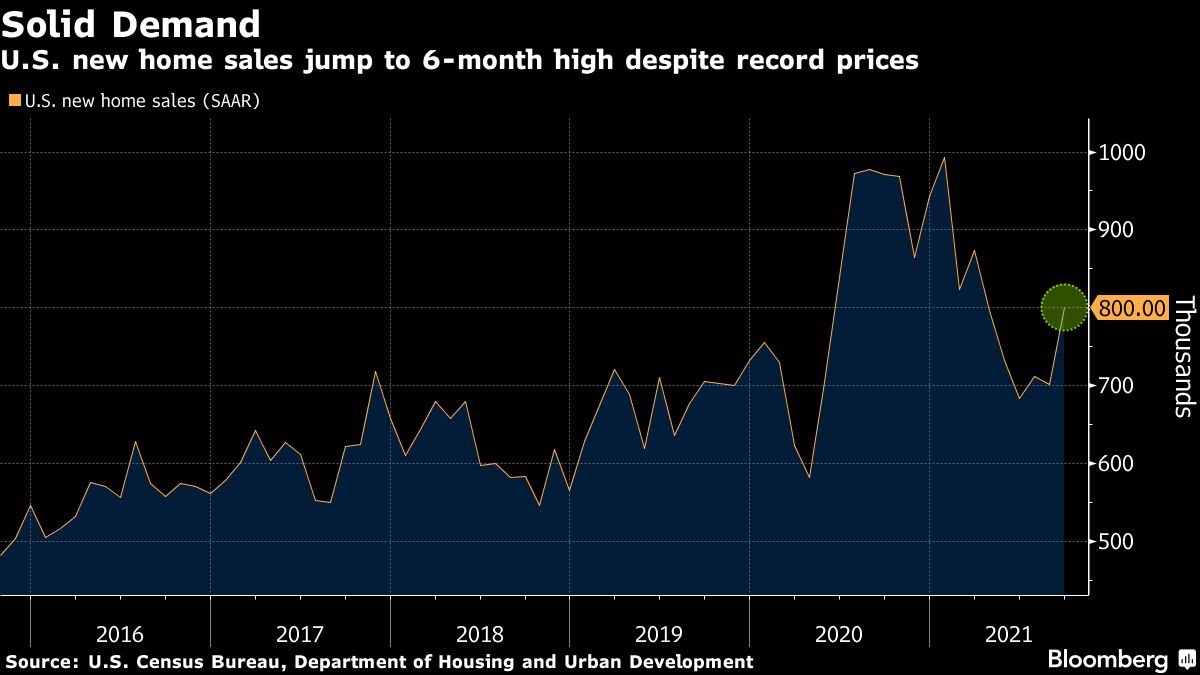 The report, produced by the U.S. Census Bureau and the Department of Housing and Urban Development, showed the median sales price of a new home jumped 18.7% from a year ago to a record $408,800. The increase reflected a pickup in sales of homes priced at least $300,000.