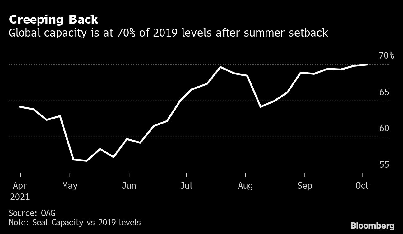 Airlines are forecast to rush back capacity faster than traffic rebounds, hurting seat-occupancy levels. The average passenger load factor is expected to be about 67% this year, rising to 75% in 2022 — still well short of the record 83% figure set in 2019.
