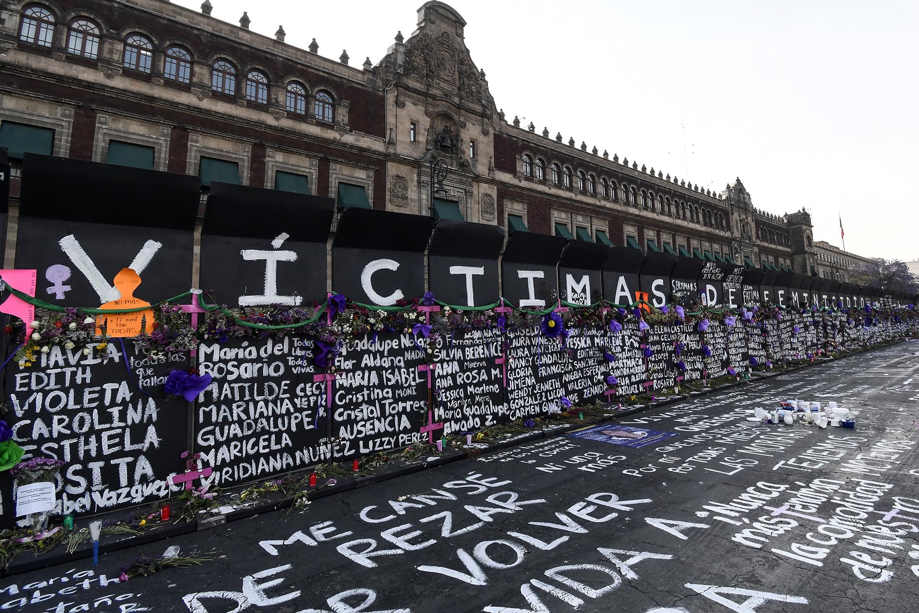 At his daily press conference, Lopez Obrador played a video of people throwing Molotov cocktails at last year’s demonstration, saying the 3-meter high barricades would avoid confrontations with riot police and stop injuries. In a show of defiance, activists spray-painted the barriers with the names of women killed in hate crimes, classified in Mexico as femicides.