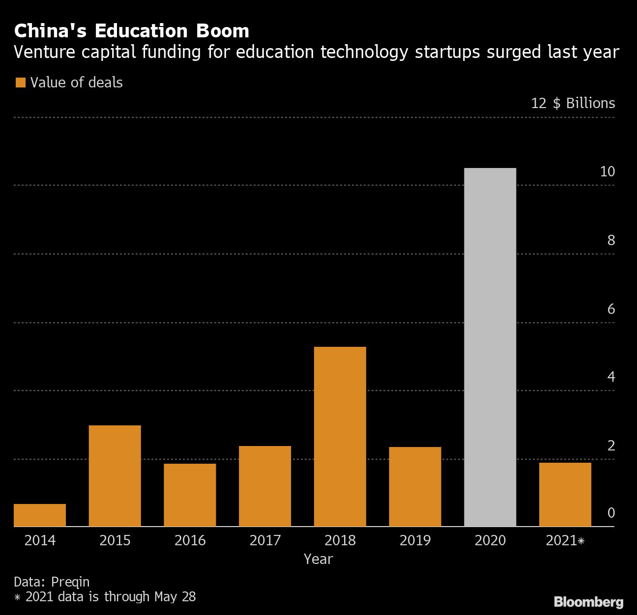 That sheer scale is why the country’s online education startups have become some of the world’s most valuable after attracting $10.5 billion of funding last year, more than was raised in total over the previous three years, according to research firm Preqin. China’s online learning market was expected to reach 315 billion yuan ($49.5 billion) in 2020, almost triple from five years ago, according to global market data tracker Statista.