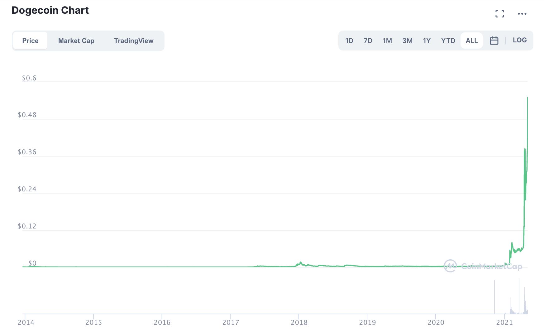 Dogecoin’s red-hot advance from around 0.002 cents a year ago — when it was worth about $300 million — has captured the interest of many on Wall Street. It’s even caught the attention of the Federal Reserve — the central bank’s chairman last week answered “some of the asset prices are high” when asked if things like GameStop Corp.’s and Dogecoin’s supercharged rallies created threats to financial stability.