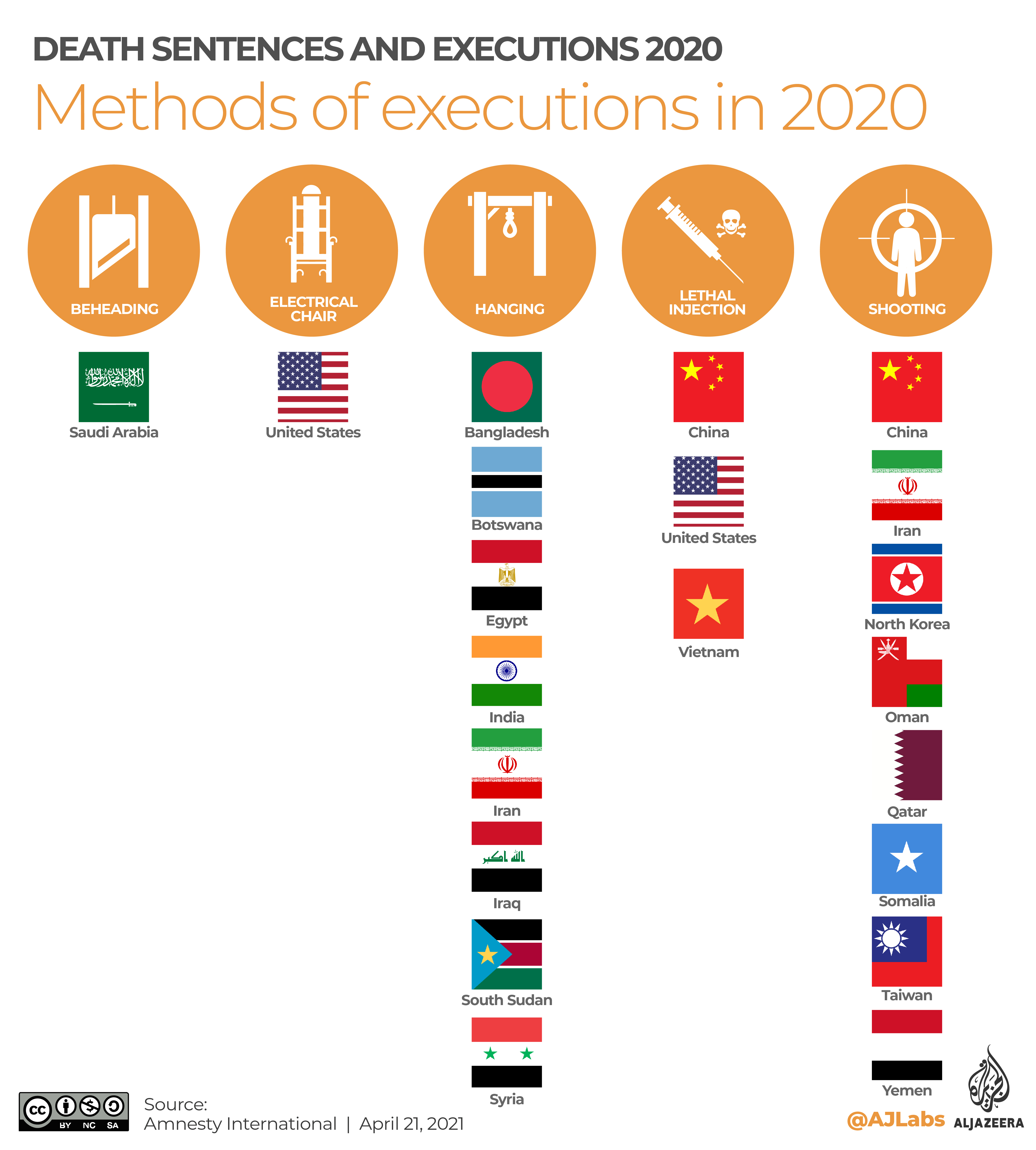 At least 483 people were executed in 18 countries in 2020, with four countries — Iran, Egypt, Iraq and Saudi Arabia — accounting for 88 percent of known executions, according to Amnesty International. Seventeen people were executed in the United States in 2020.