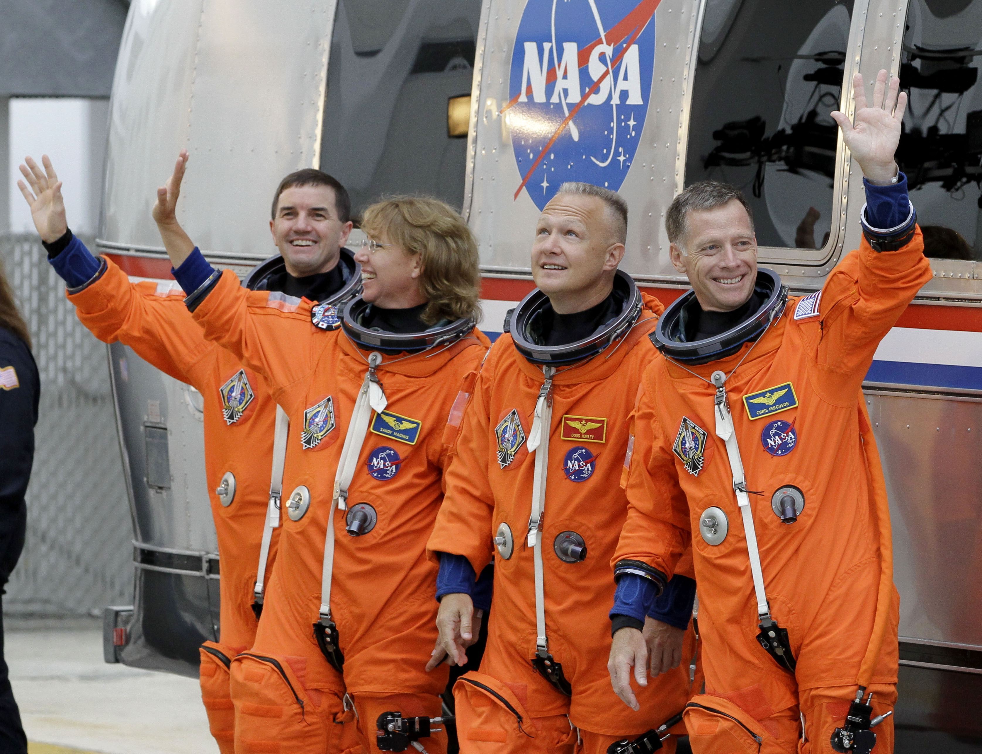 “For Shane and I, it’s going to be our third spacecraft we’re leaving Earth with,” Hoshide said during a news briefing. “We’re looking forward to the rumble and the G forces pushing on our chests.”