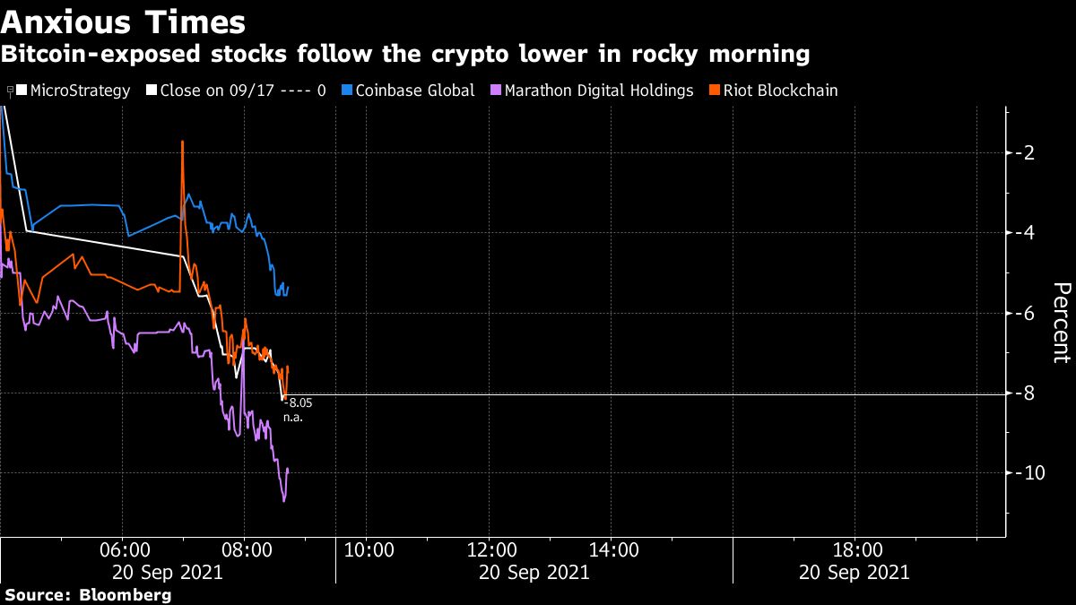 Bitcoin got caught up in broader market fears about possible contagion should Chinese property developer Evergrande see a messy debt default.