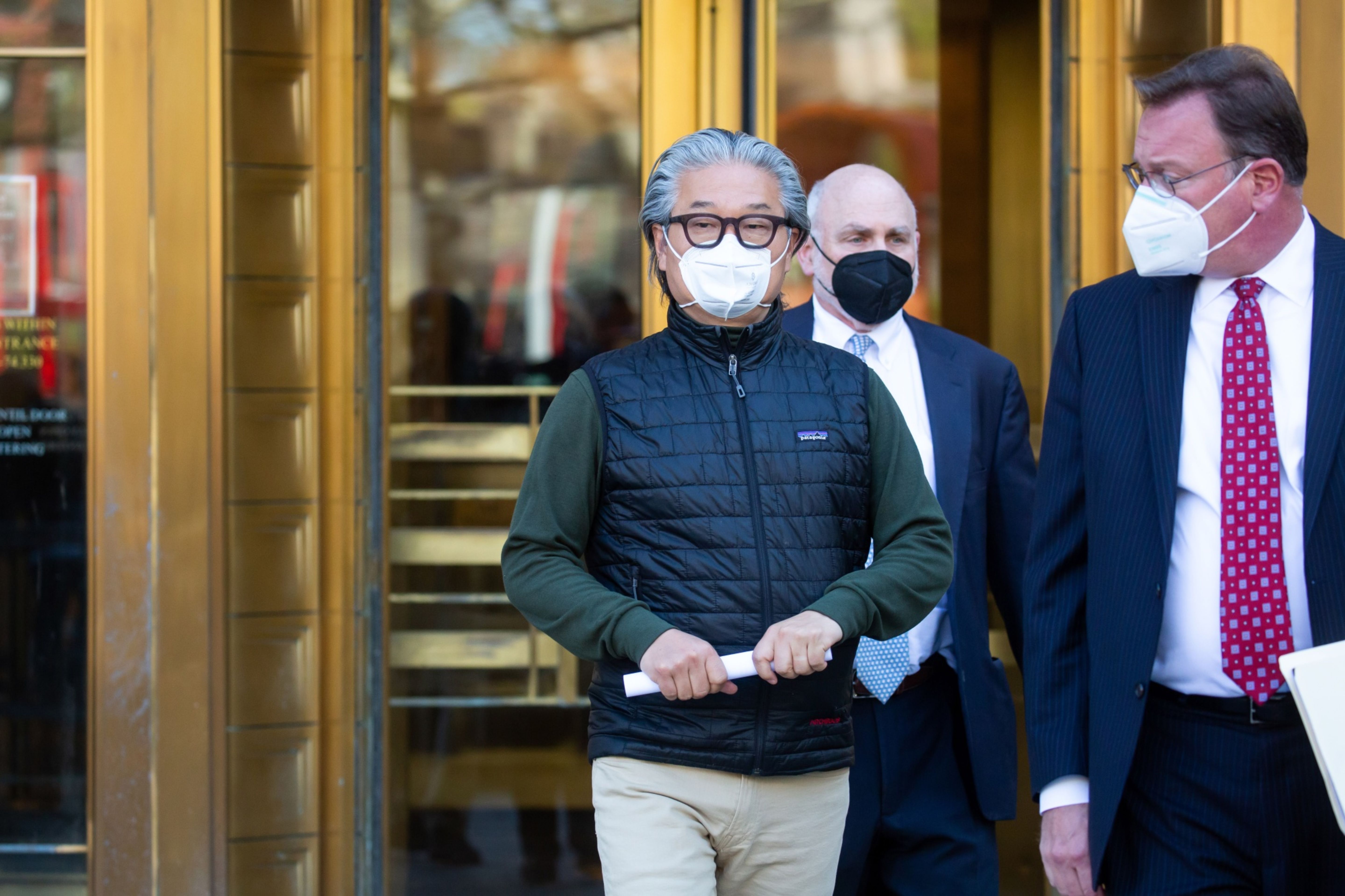 With his sweptback salt-and-pepper hair and donning a face mask, green turtleneck and tan pants, Hwang appeared in court Wednesday afternoon to enter his not guilty plea. He agreed to pay $5 million in cash and pledged two properties to secure a $100 million bond, while Halligan agreed to $1 million bail. Both men agreed to restrict their travel.