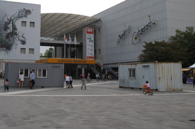 Gwangju, South Korea – Gang Byung Hyun, a bespectacled 65-year-old man, has visited the ongoing Gwangju Biennale held in this South Korean city several times. He usually spends around three hours at the contemporary art exhibition, but mainly goes to see one work, which spans the bustling, concrete square out the front, and occupies two rooms within the gallery halls.