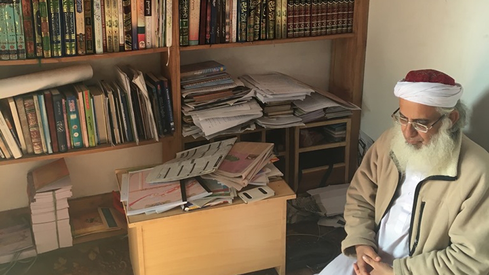 As the interview comes to a close, the cleric collects a few copies of his self-published books from a small, rectangular office to hand out. One of them is entitled “Is Pakistan’s Constitution Islamic?”