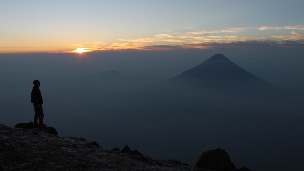 At 4am the tour group heads for Acatenango’s summit to catch the 6am sunrise. The summit is at 3,976 metres, and Elvin estimates it is minus 3C that day.