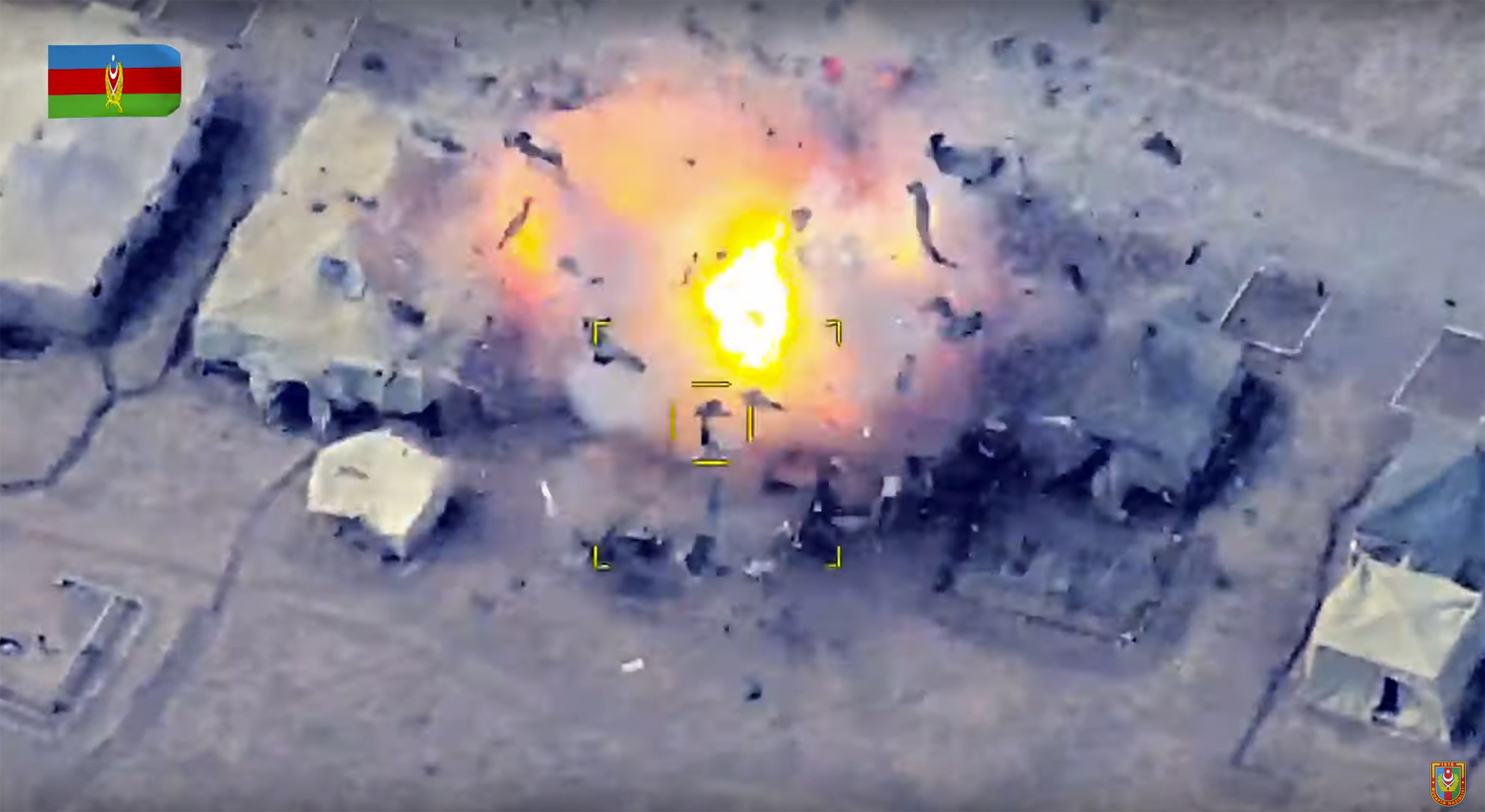 Digital billboards in Baku have broadcast high-resolution imagery of missiles striking Armenian tanks and other military hardware, as well as groups of soldiers caught in the open.