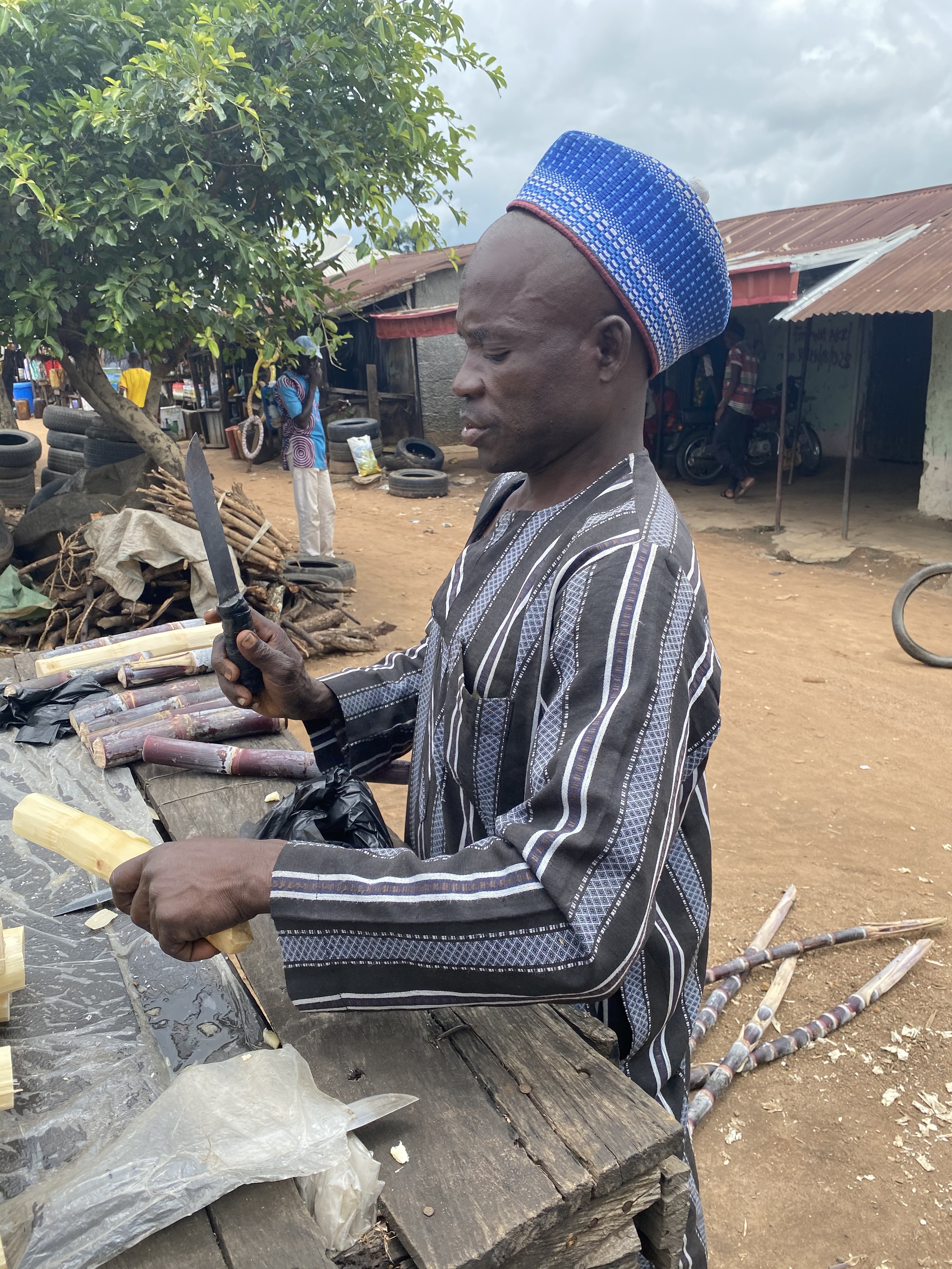 “I do not earn anything there. I do not benefit at all from there. What will take me there?” he asks, offering us sticks of sugarcane. “In my whole life I have never set foot in Abuja, so what do I need the train for?”