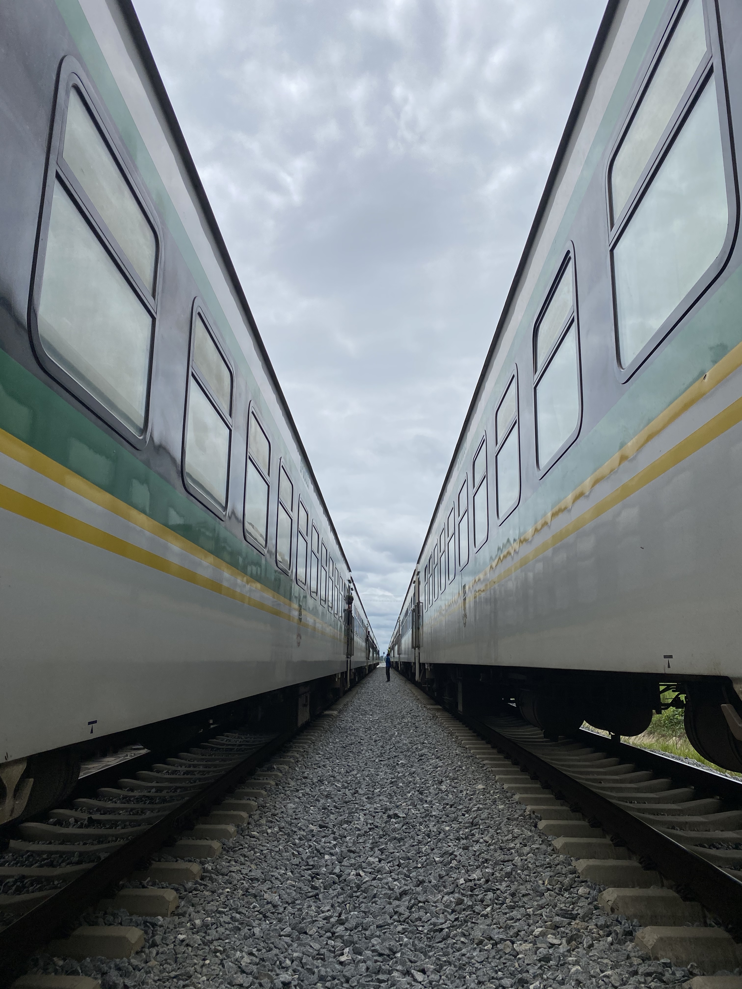 As the doors of the train open, the photographer and I jump out and find ourselves not on a platform, but right in the middle of two tracks, sandwiched between two locomotives, one racing towards Kaduna and another – the one from which we have just alighted – towards Abuja. The sound of the trains – which reach speeds of more than 100km/h (62mph) – is deafening.