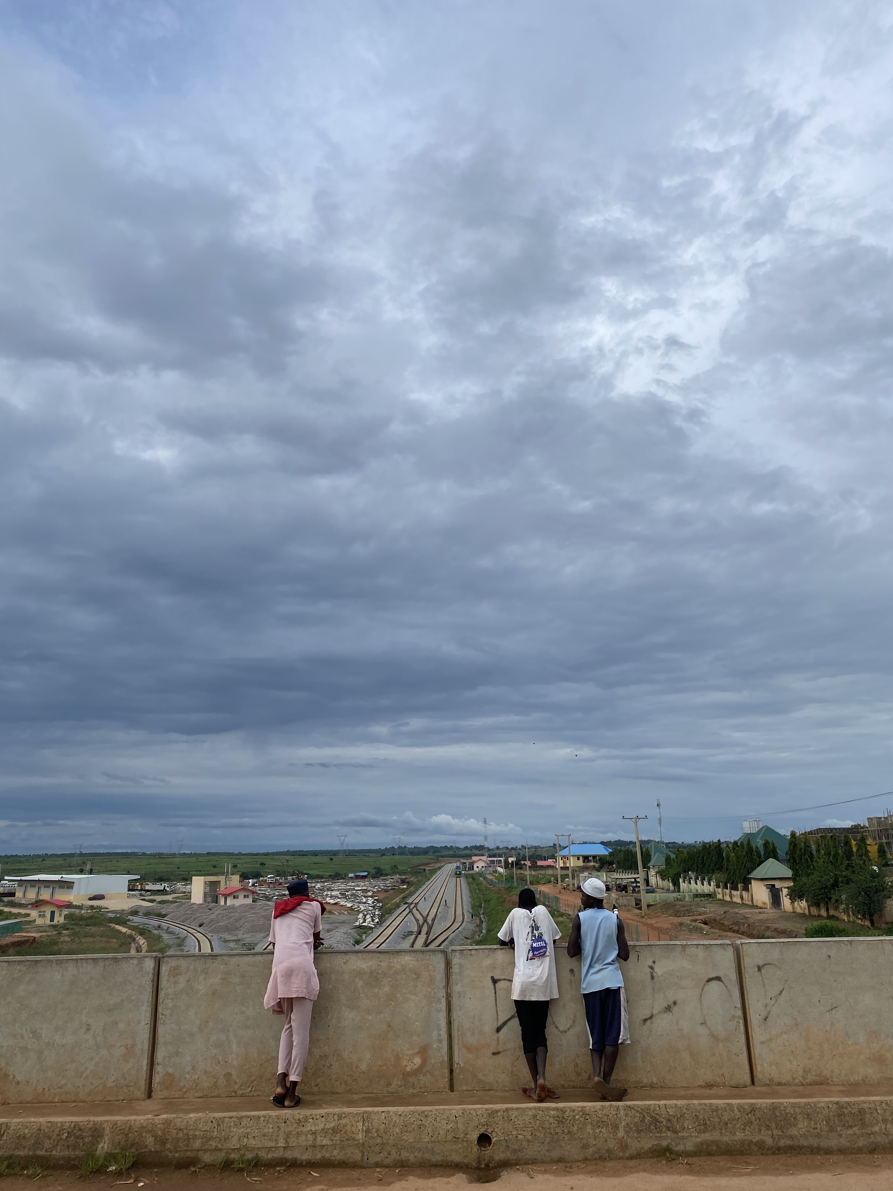 As the sun begins to recede into the Rigasa skyline, the fourth and final train of the day to Abuja gets ready to depart. On a bridge above the tracks, children run to get a glimpse of it.