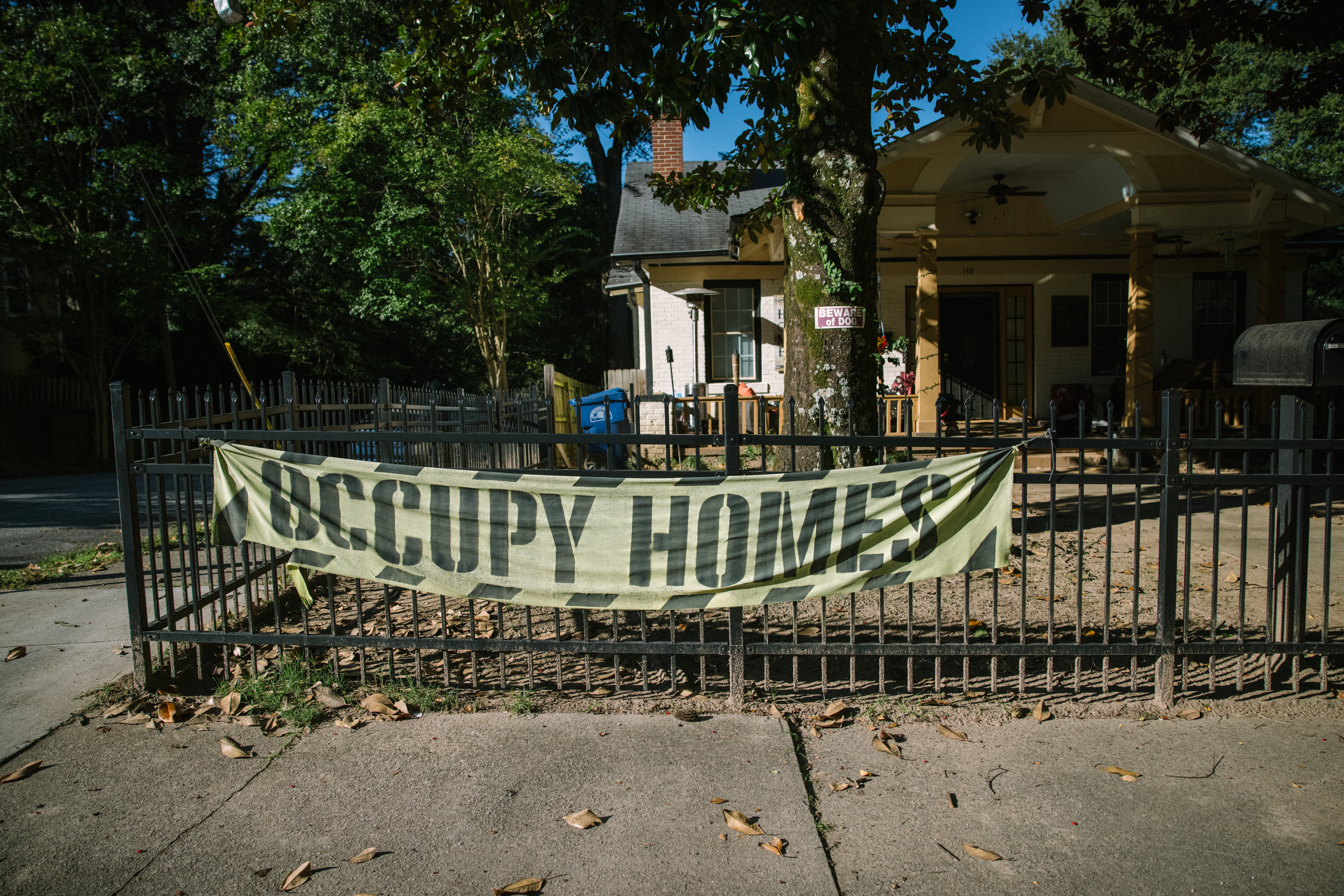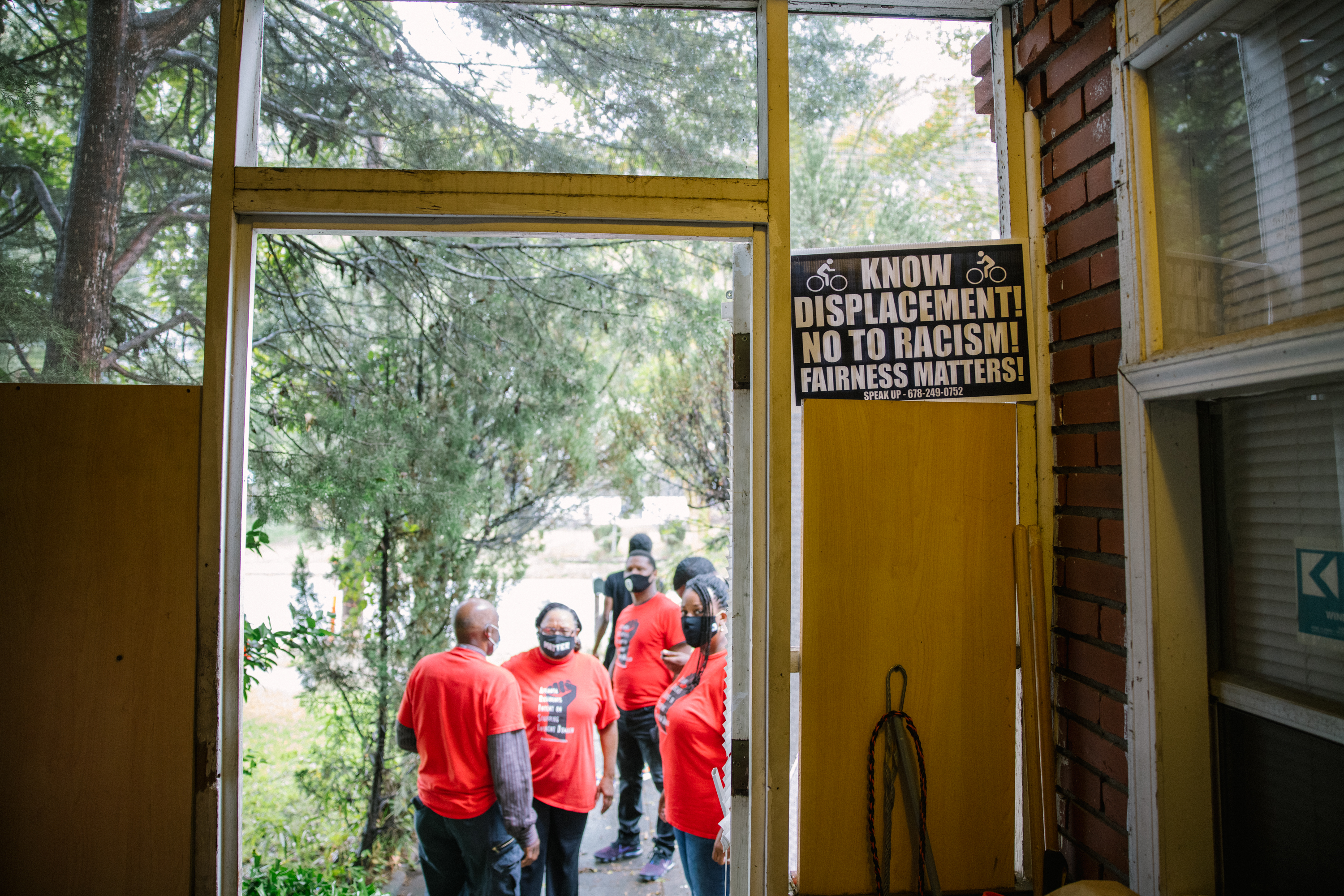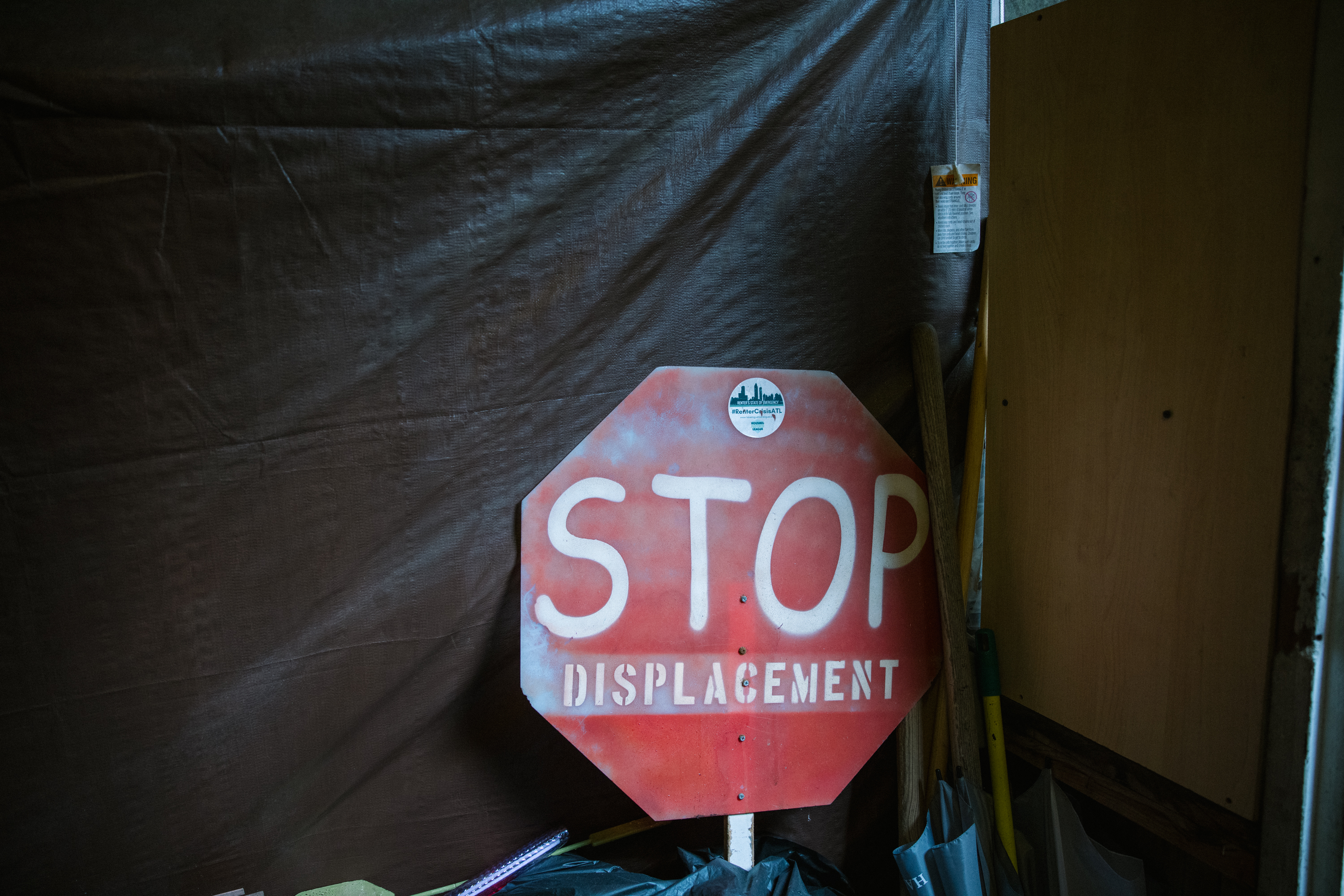 “Mayor Bottoms, stop displacing Black families,” one of the signs reads, referring to Atlanta’s current mayor, Keisha Lance Bottoms. “Stop predatory use of eminent domain,” is printed onto another.