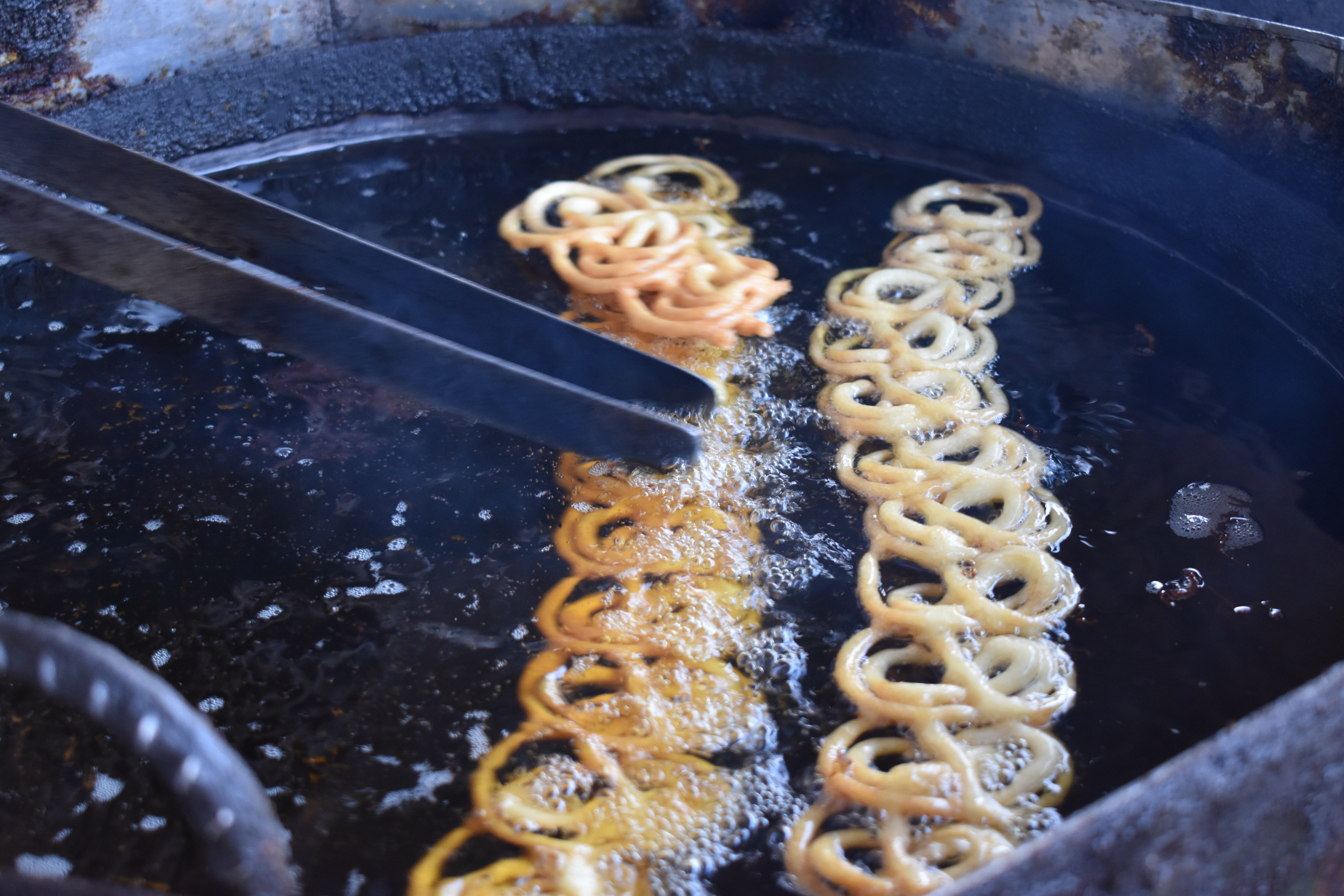 Arriving back at Gulshan Ravi’s Moon Market which leads to my uncle’s rented house, we are welcomed by neatly organised stalls of fruit and vendors preparing syrup-sweet coils of deep-fried Jalebi, a traditional sweet in Pakistan.