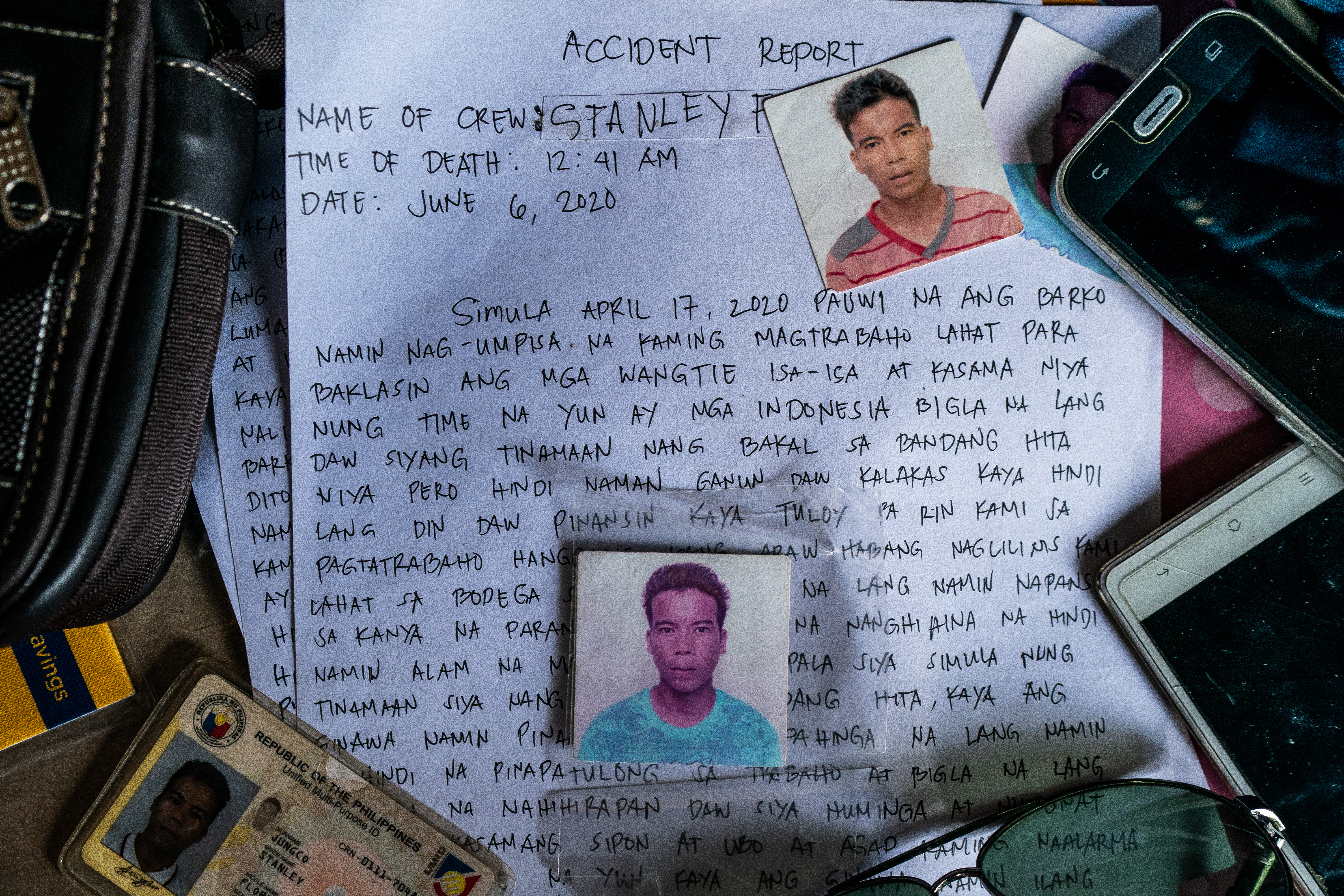 On December 31, 2019, while hauling in their catch, Raul fainted, hitting his head on a steel pipe as he fell to the floor. In a handwritten letter penned by crew members, Raul complained of a headache and body pains after the accident. The men took turns looking after him during their breaks, but he became weaker.