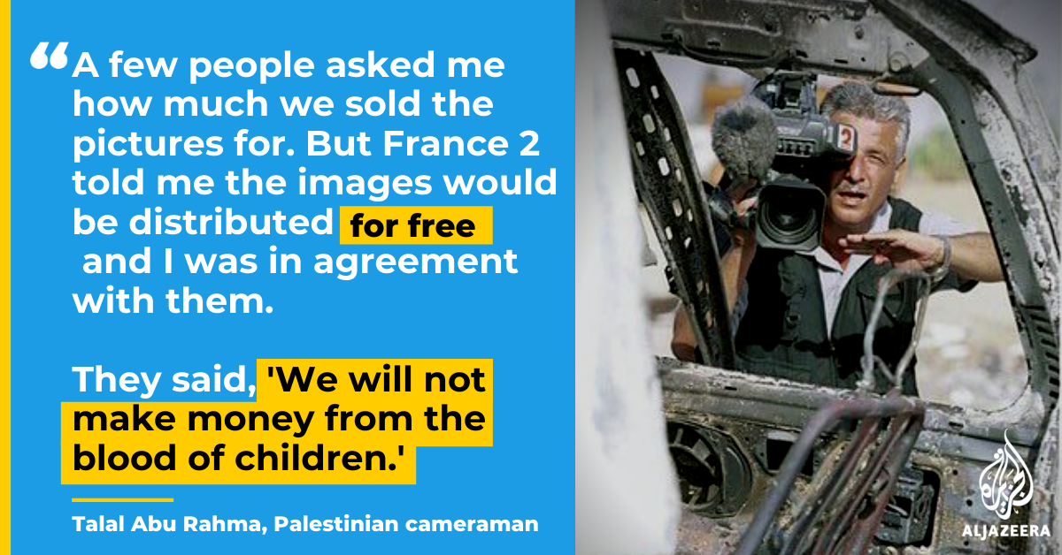 A few people asked me how much we sold the pictures for. But France 2 told me the images would be distributed for free and I was in agreement with them. They said, “We will not make money from the blood of children.”