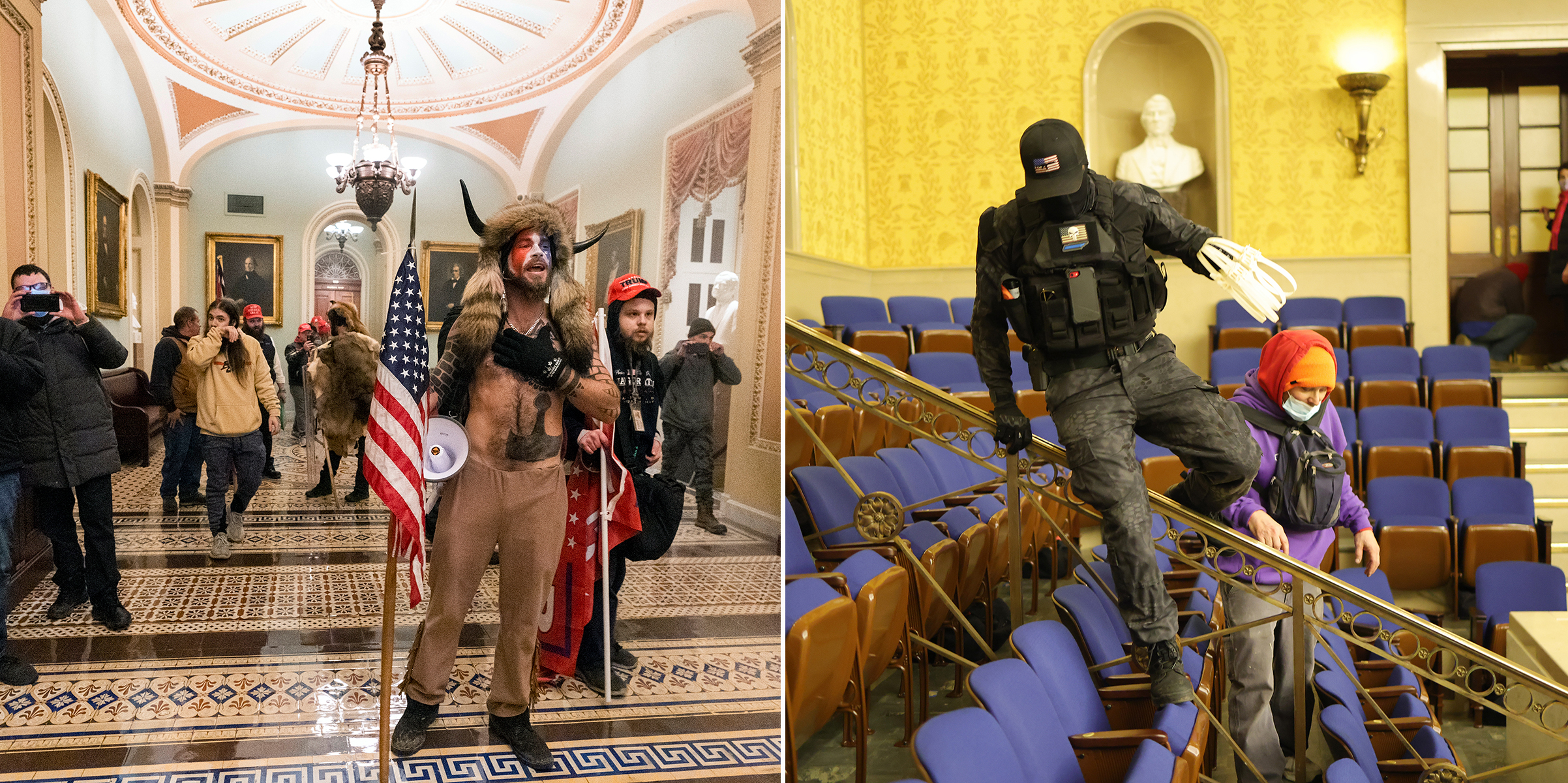 How to square these two sets of images? Was it a macabre clown show or a horrifying insurrection?