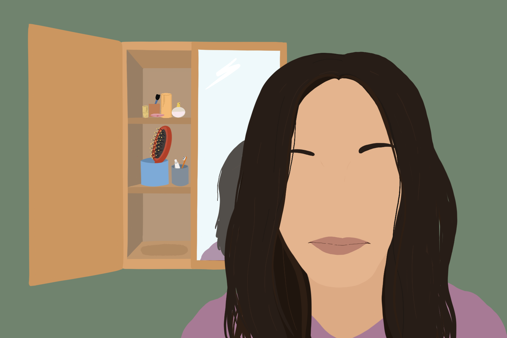 My routine requires two brushes, one for my head and one for my teeth, and a five-minute makeup session broken up by stoplights on my way to work. I do not primp in the bathroom. Makeup is barely rubbed in. Clothes are clean at best. I am a mess. Maybe this is why he left.