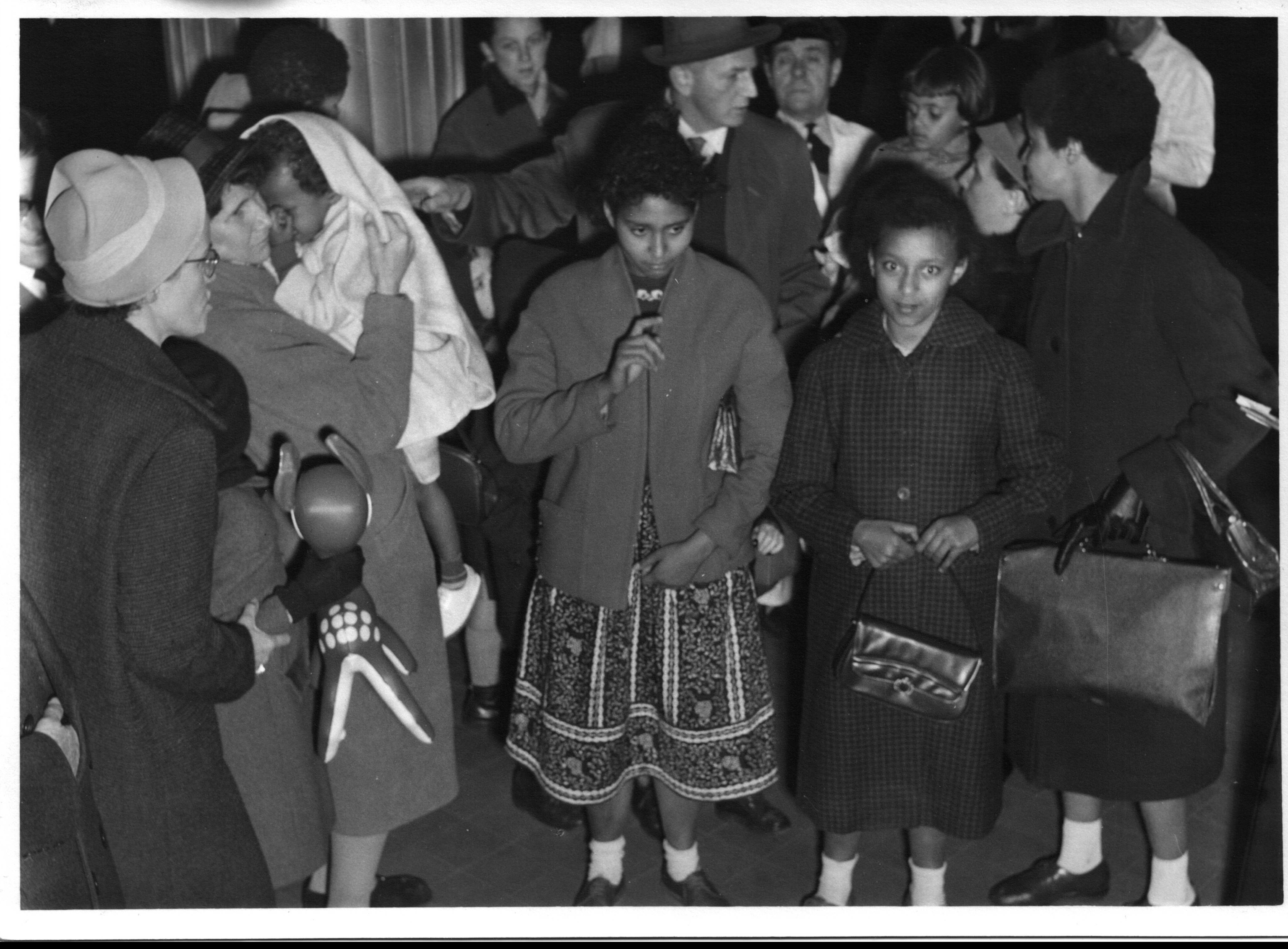 Jacqui was three when she arrived in Belgium. The plane landed on the coast because of fog, then the children came inland to Brussels by train. There are photos and footage of foster families clutching Métis children, and Jacqui sobbing in the arms of her foster mother who has brought a large spotted soft deer toy. As per policy, she was separated from her sister who was sent to a city 200km away from Blankenberge where Jacqui grew up.