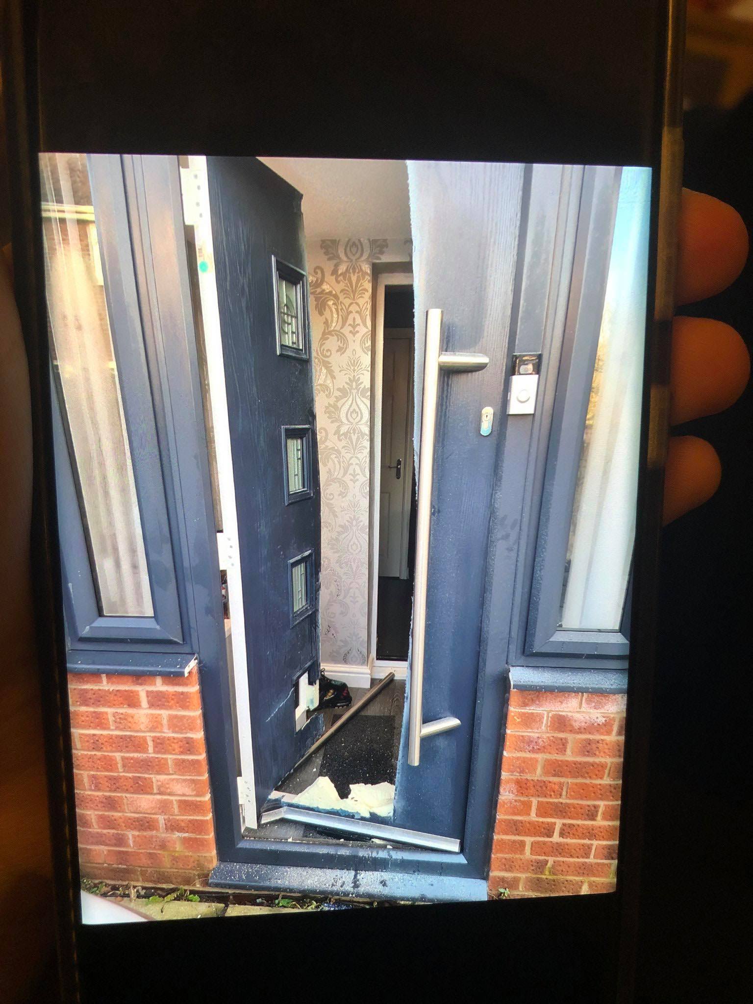 ‘Our front door was smashed to pieces’
