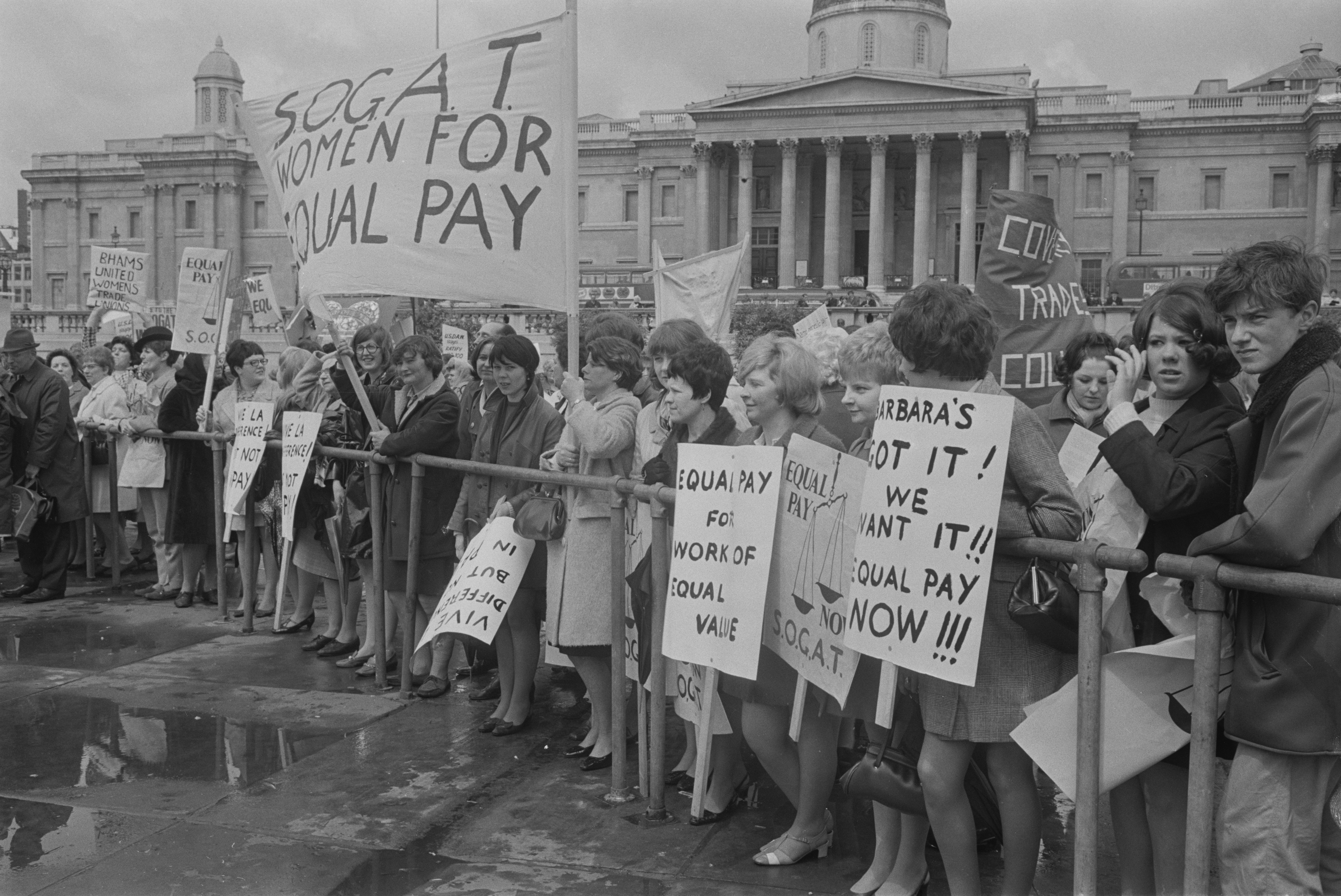 The campaigners demanded legal and financial independence for women, which was one of the seven demands of the Women’s Liberation Movement at the 1974 Women’s Liberation Conference, focusing on legal and financial independence, including tax, benefits and pension policies that treated husband and wife as a breadwinner/dependent couple with no need for separate incomes. It also campaigned around the so-called “coalition rule” that assumes that a woman who cohabits with a man was financially dependent upon him, thus making her ineligible for social security benefits in her own right.