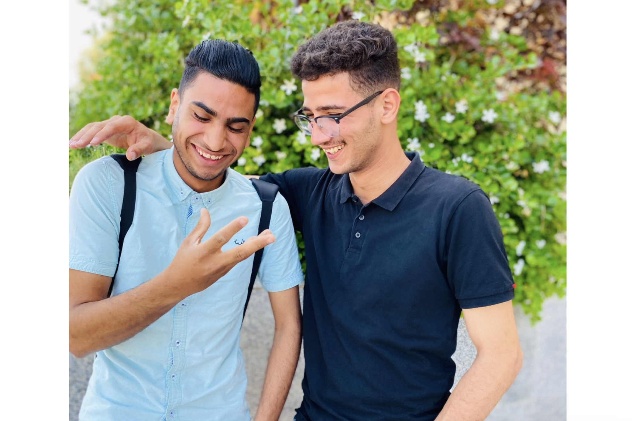 Mohammed wears glasses so he can see. In photos with his university friend Amjad al-Athamneh – who has since been killed in a bombing – his laugh lines reach all the way to their rounded frames.