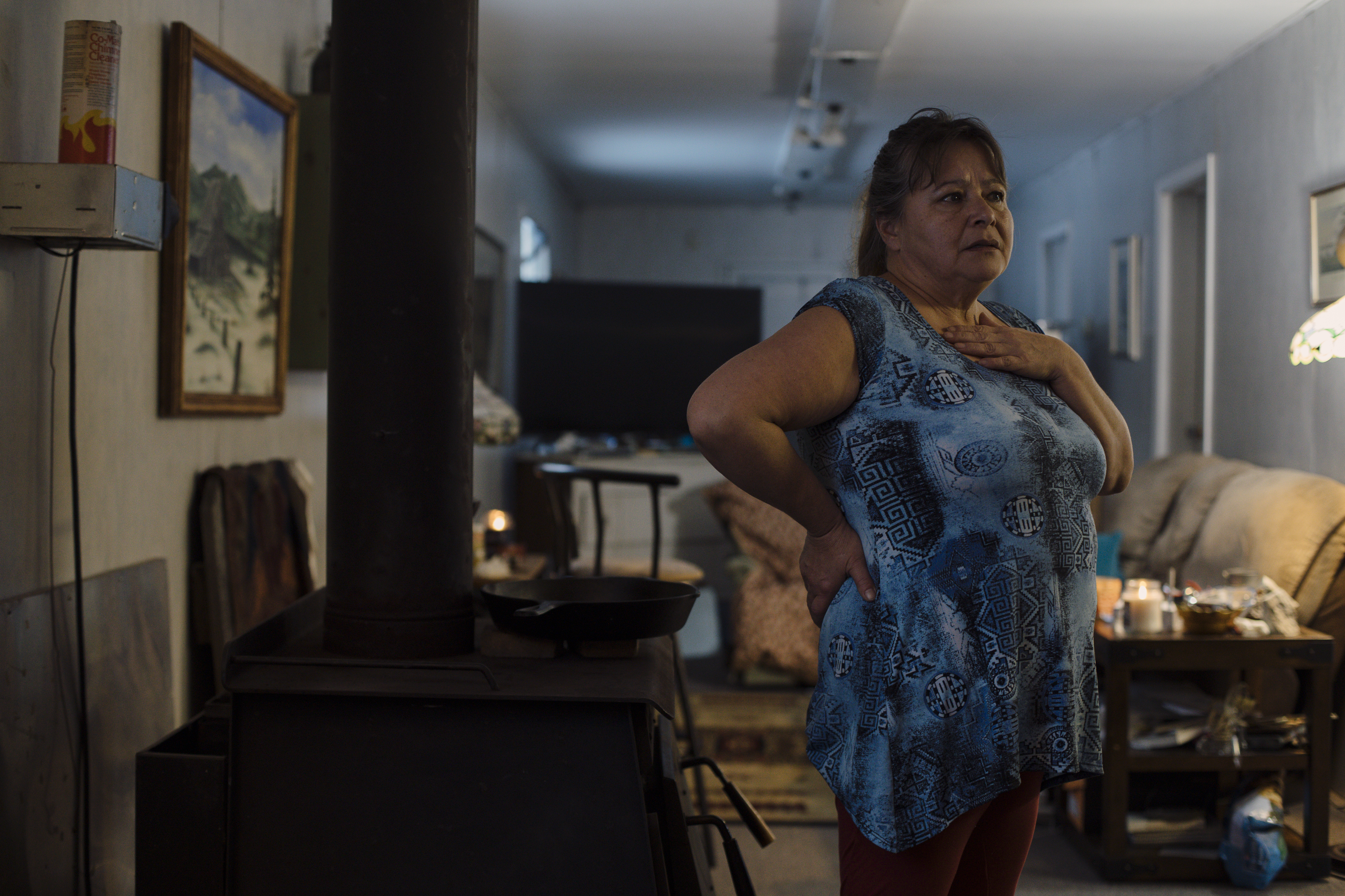 British Columbia, Canada - Fifty-seven-year-old Mary Nikal flops down onto a blue Chesterfield couch. Her scruffy miniature black poodle sits at her feet.