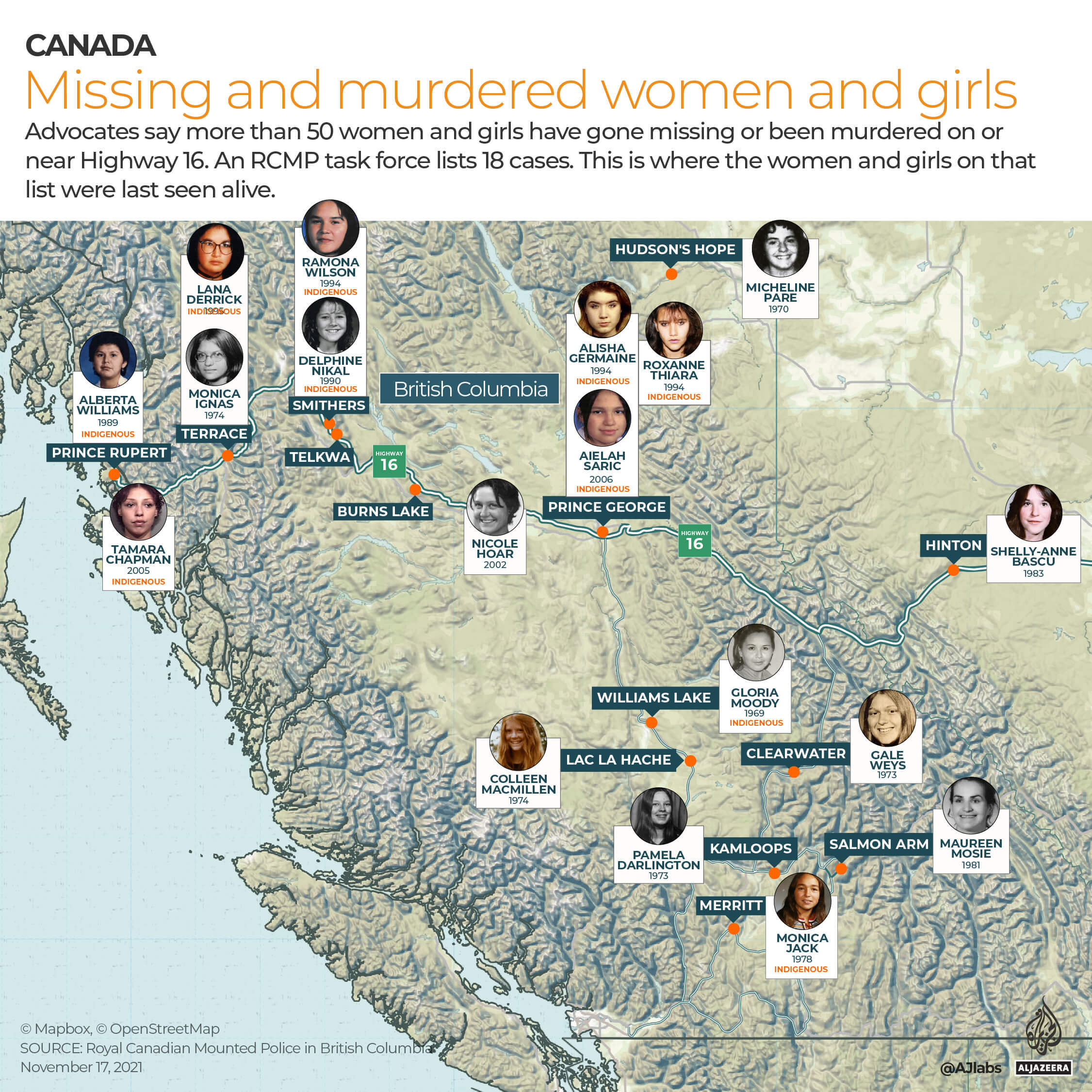 In this six-part series, Al Jazeera tells the stories of some of the Indigenous women and girls who have gone missing or been murdered along an infamous stretch of highway in British Columbia, Canada.
