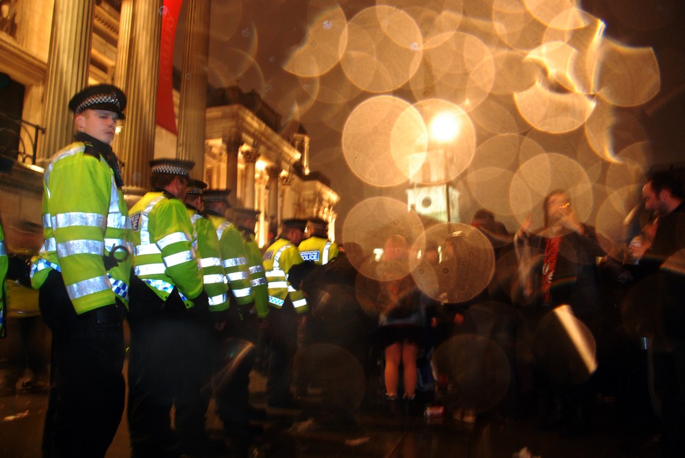 The notorious British rain poured down, but failed to dampen spirits of those gathered, who stayed in the square until around 2am.