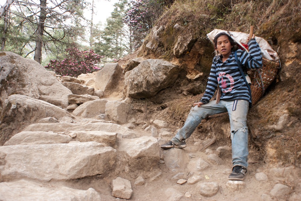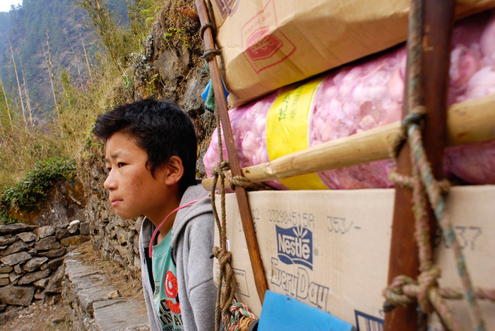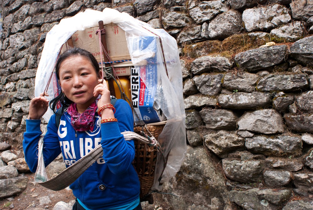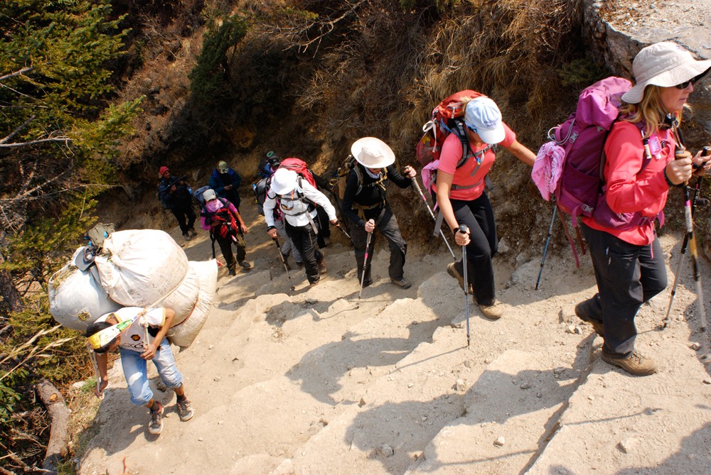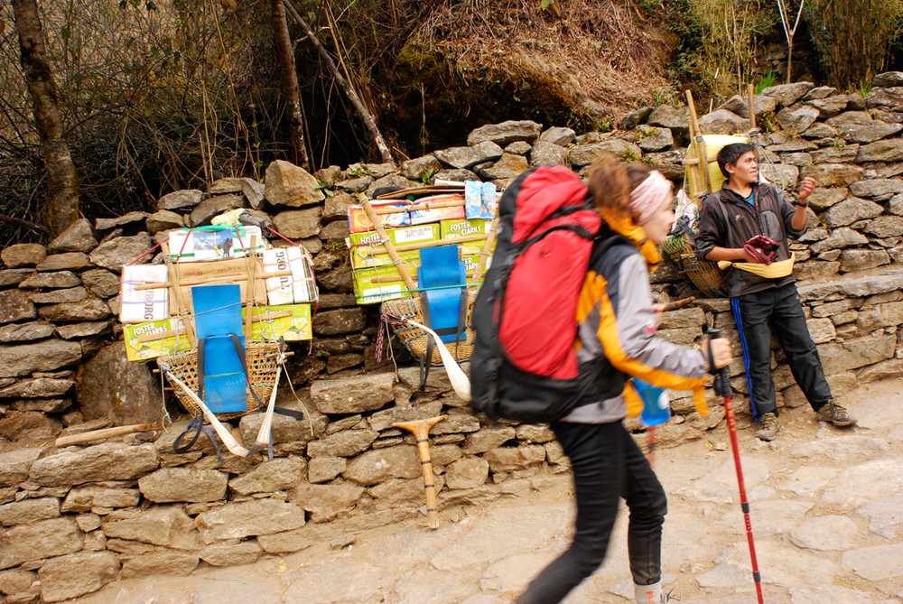 Hiking the challenging terrain with the best mountain gear and a small backpack is exhausting – but porters often make the journey without heavy clothing and sturdy footwear, while carrying loads of 50-70 kilograms on average.