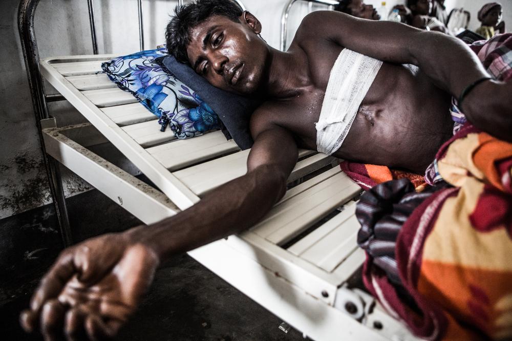 Conditions inside the dusty camps are sparse. Those lucky enough to have been allocated official aid buildings live with 10 families in each long house. Those that are still waiting to be assigned space from the government are left to create makeshift shelters out of whatever they can salvage, whether it be empty food bags or dried rice stalks.