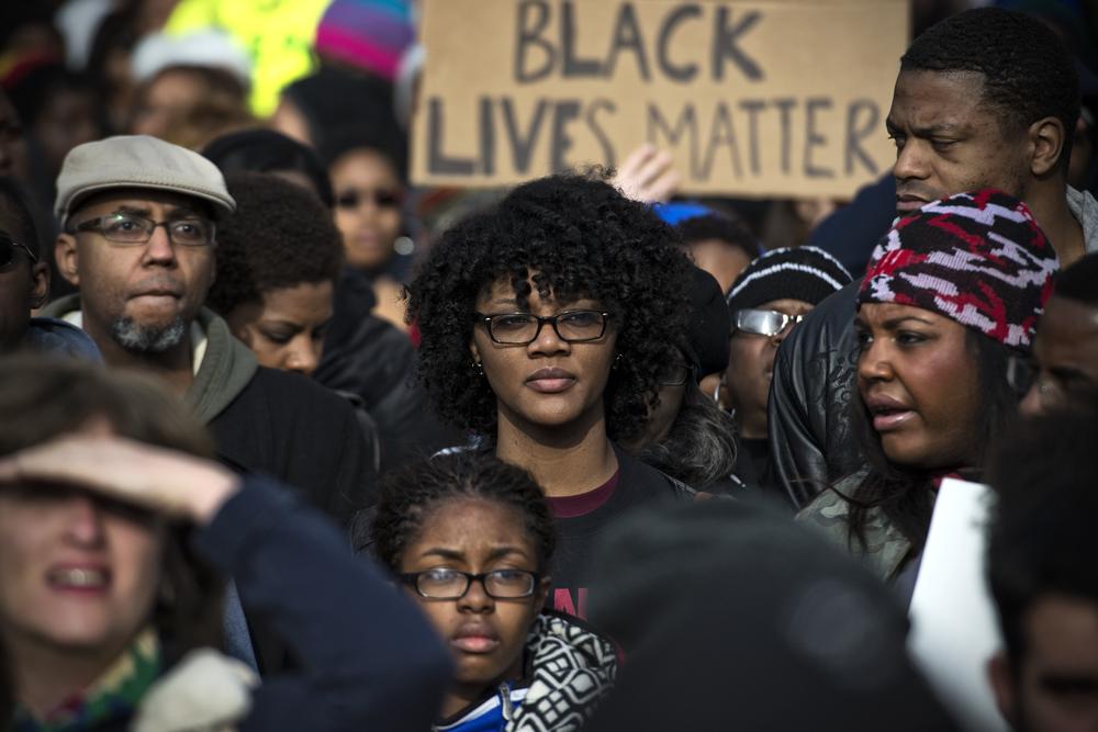 Leading the rally were the families of Eric Garner, John Crawford III, Tamar Rice, Michael Brown and Amadou Diallo. The sea of demonstrators carried signs bearing the names of victims of police violence, and slogans such as “It could be your brother,” and “No justice, no peace.”