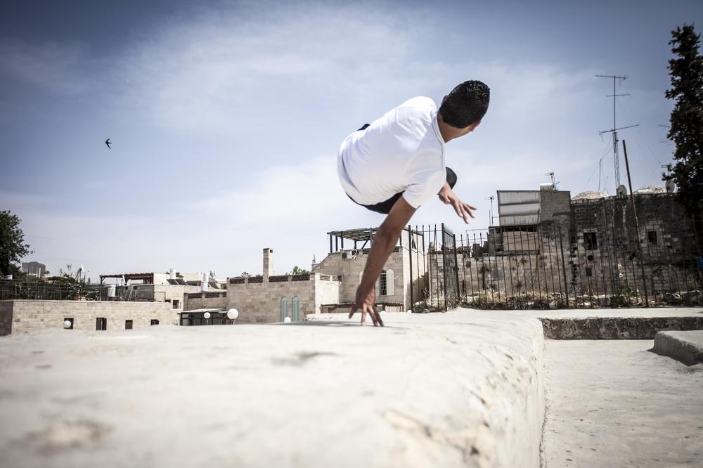 On a rooftop overlooking Jerusalem one recent day, Sami methodically planned his movements before making a jump. He gave one final look towards his friend, who stood back and watched the young man as he made the leap – an impressive flight of several seconds over the heads of onlookers seven metres below.