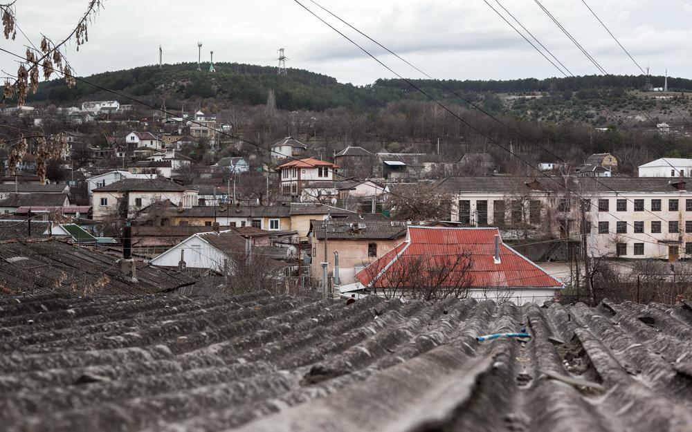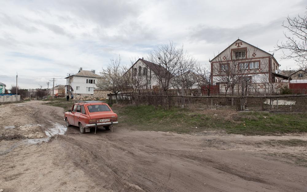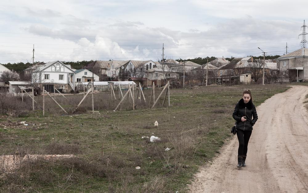 A woman walks down a road in Bakhchisaray, where the Tatar population is feeling increasingly isolated as a result of the Russian invasion.