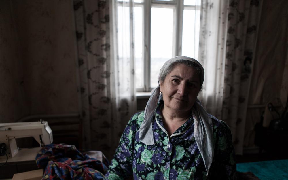 Elmira Ablayeva stands inside her house in Bakhchisaray. The 65-year-old worries that her minority community will face discrimination as Russia tightens its grip on the region.