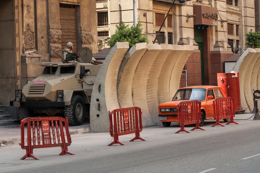 Just days before Sisi’s inauguration, a group of pro-Sisi supporters holding placards and flags in Tahrir Square seemed to have the blessing of security forces, while anti-Sisi protesters were hesitant to gather en masse. Strategic locations like metro stations, government buildings and universities had visible security presence established outside – men in black body armour and helmets were holding Kalashnikovs or long rifles. Security forces in other locations were more discreet. Behind a wall of the Egyptian Museum were several armoured vehicles with mounted machine guns, ready to quickly mobilise should the need arise.
