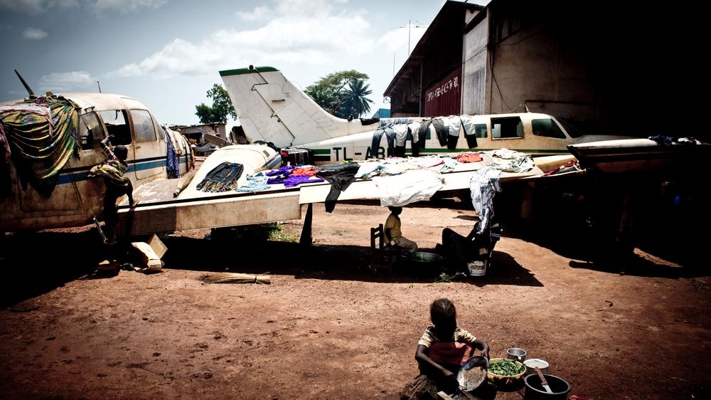 Nearly 40,000 Christians still live on the airport grounds under derelict planes, in hangars, and under a sea of tents by the runway. Many have lost family members and homes. For now, they have nowhere else to go. Children play, smile, and laugh.