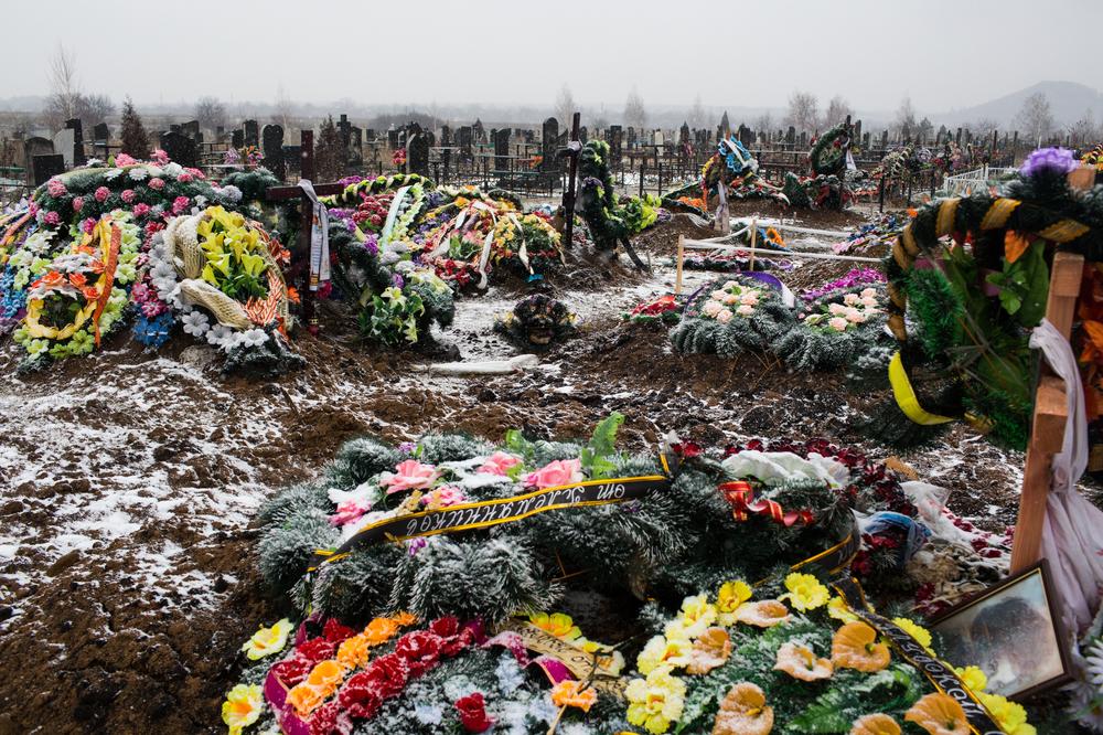 Fresh graves in a cemetery near Pisky show the human cost of the war after months of fighting between pro-Russian rebel forces and the Ukrainian army and volunteer battalions.