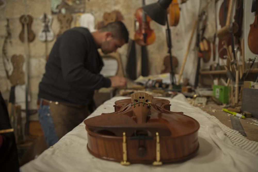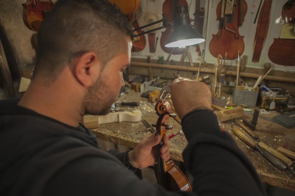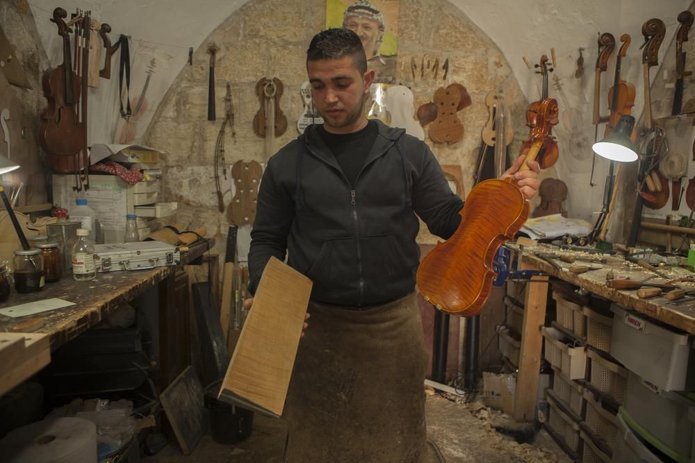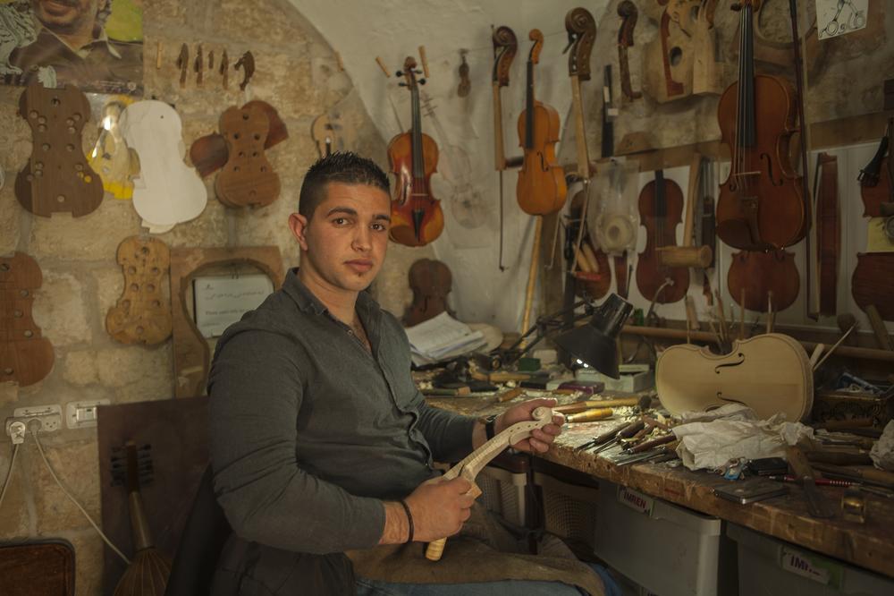 The youngest luthier in Ramallah lives next door to the shop where he makes and repairs violins.