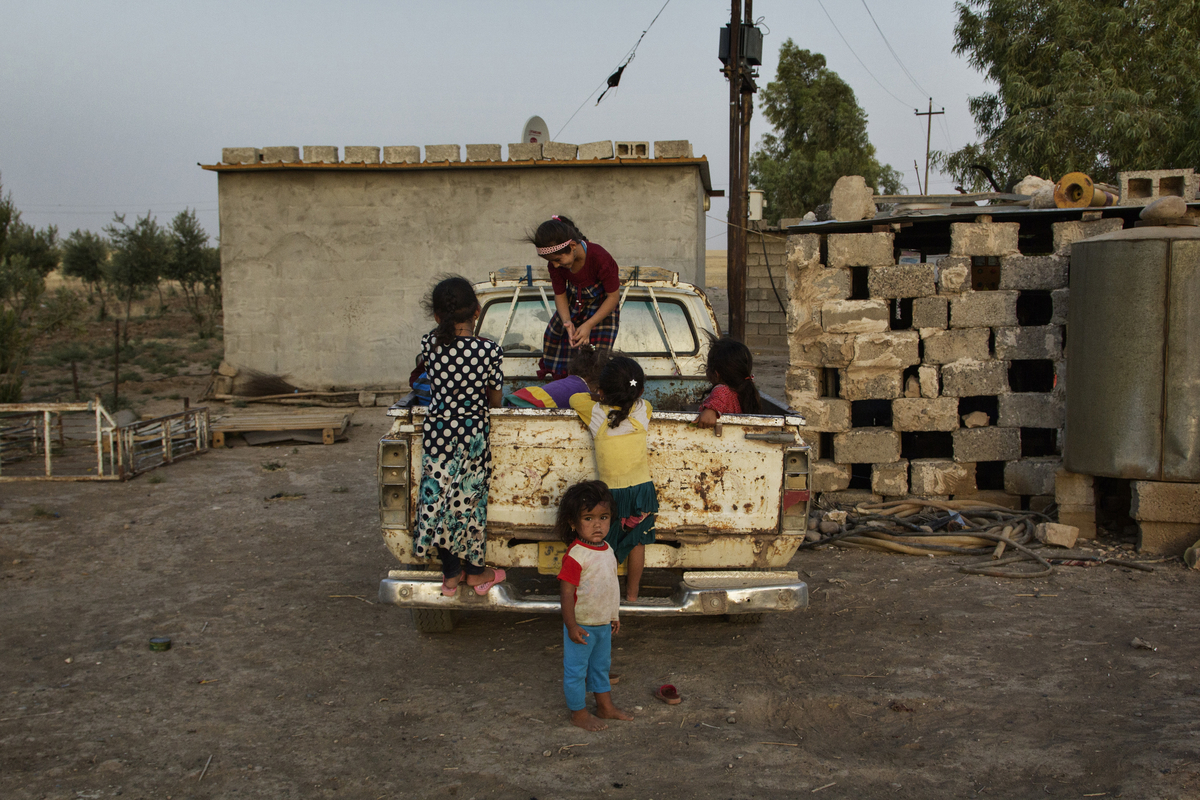The villagers have made the chicken farm home, turning one room into a mosque as they slowly rebuild their lives. They have found jobs in the fields – tending sheep, harvesting wheat and picking vegetables. Many seem to understand that it may be a long time before they will be able to return home.